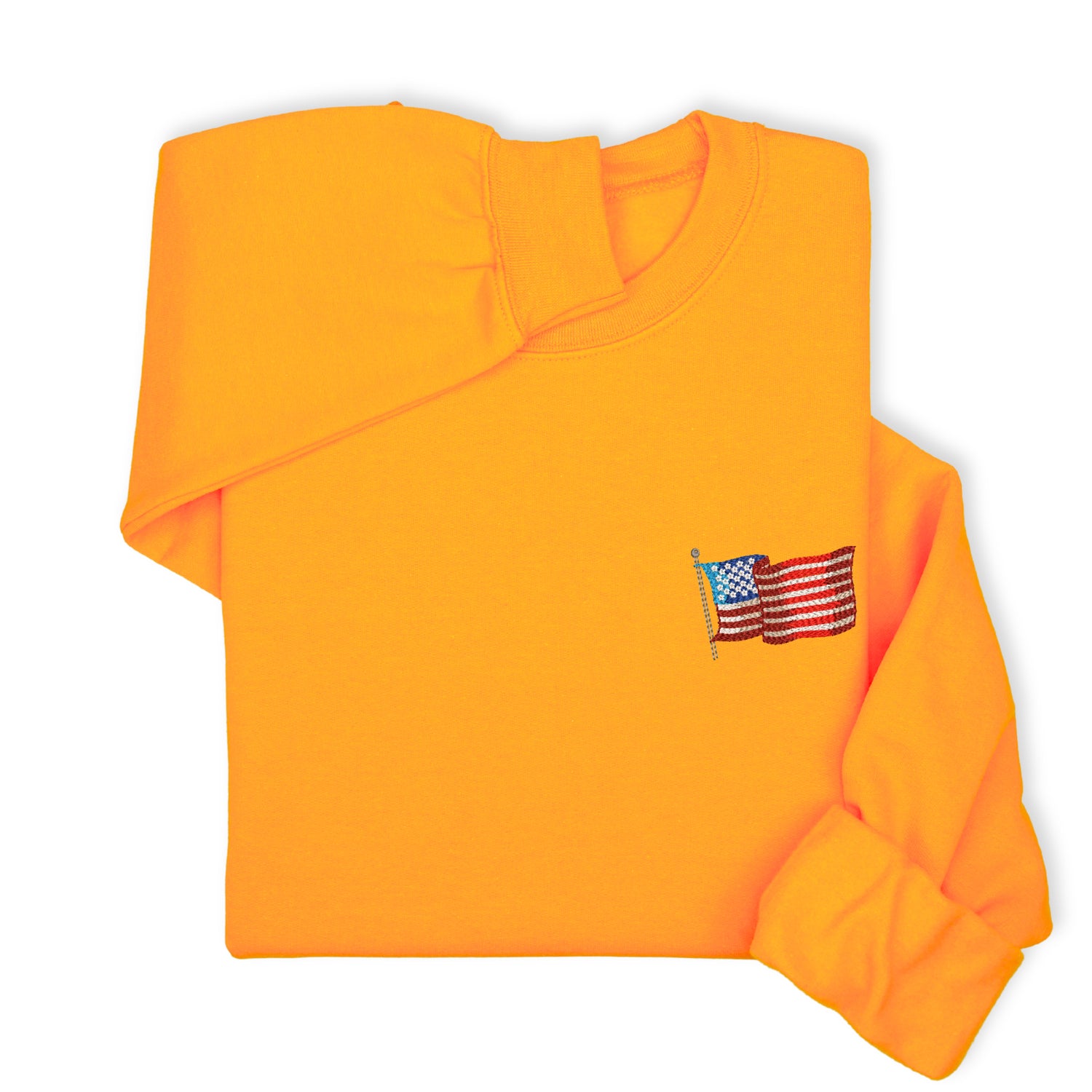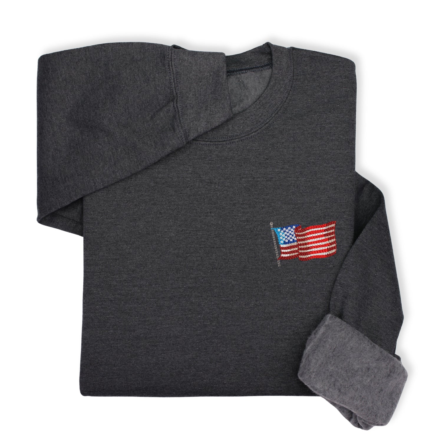 Stay cozy and proud in this unisex sweatshirt & hoodie featuring a bold embroidered American flag. It’s the perfect mix of comfort and patriotism for your everyday wear or special holidays like the 4th of July, Veterans Day, or Memorial Day.