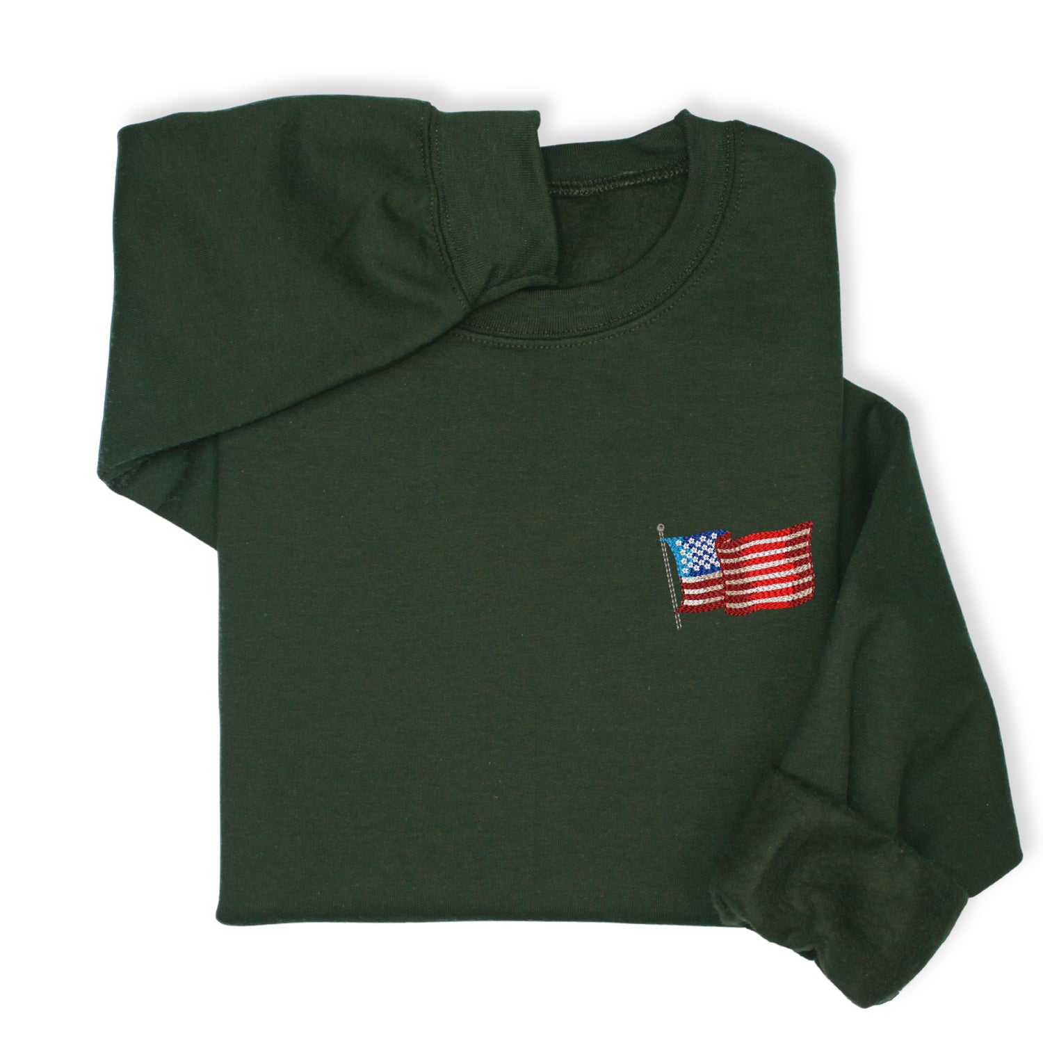 American Flag Embroidered Hoodie & Sweatshirt, Patriotic USA Pride Gift, 4th of July Unisex Apparel, Independence Day Outfit