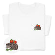 Stay comfy in this unisex t-shirt featuring a charming embroidered hedgehog carrying apples — a cozy woodland detail for everyday wear.