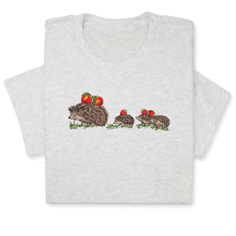 Embroidered Hedgehog Family T-Shirt, Cute Animal Nature Lover Gift