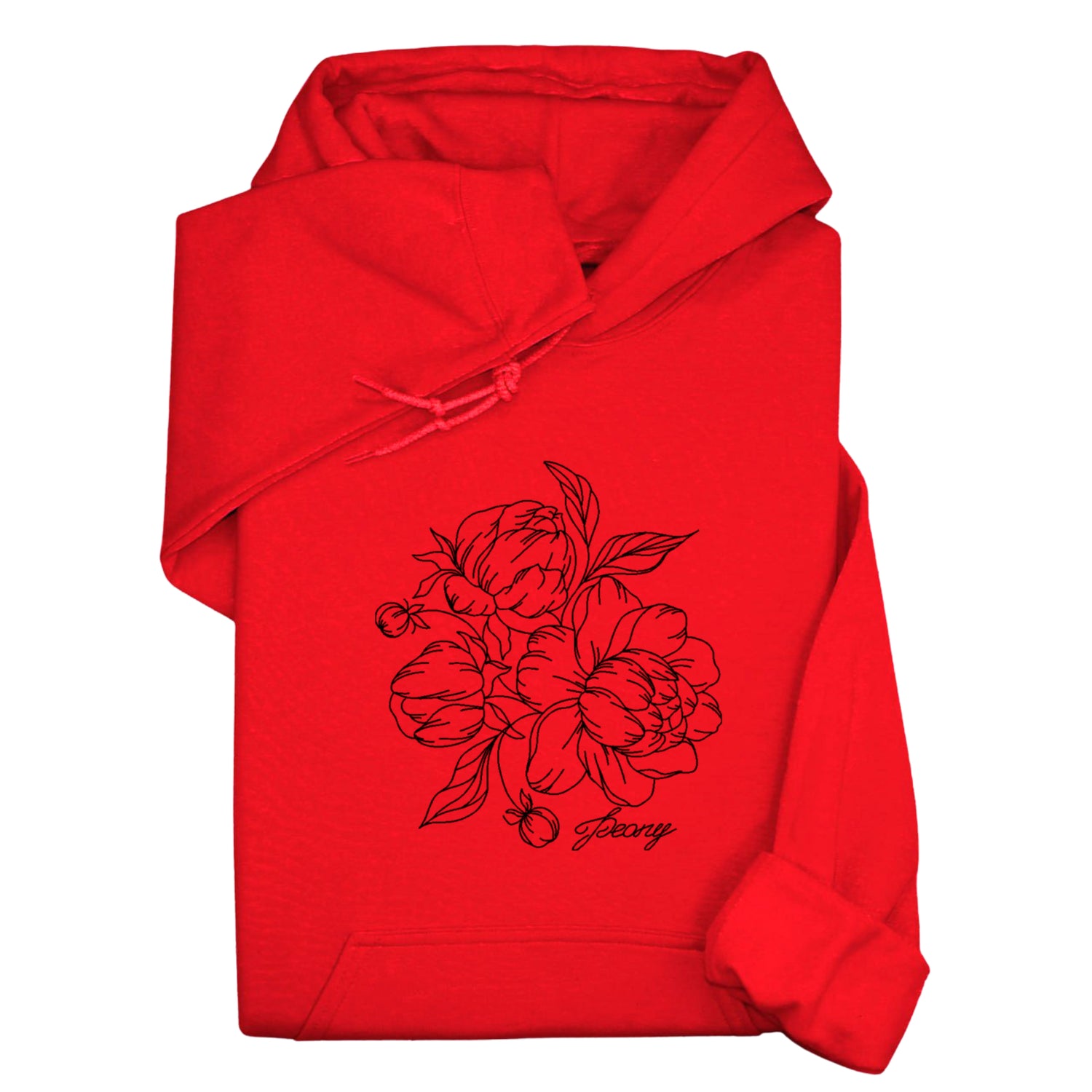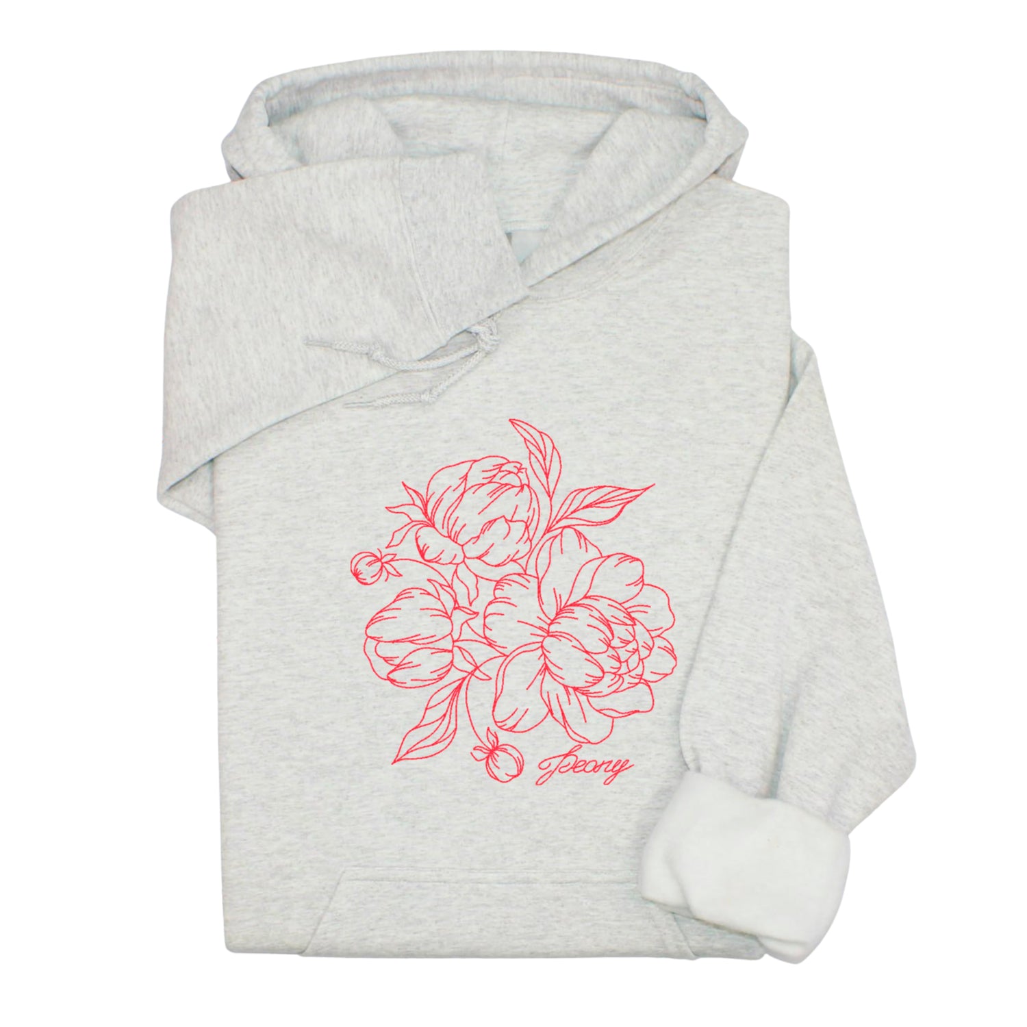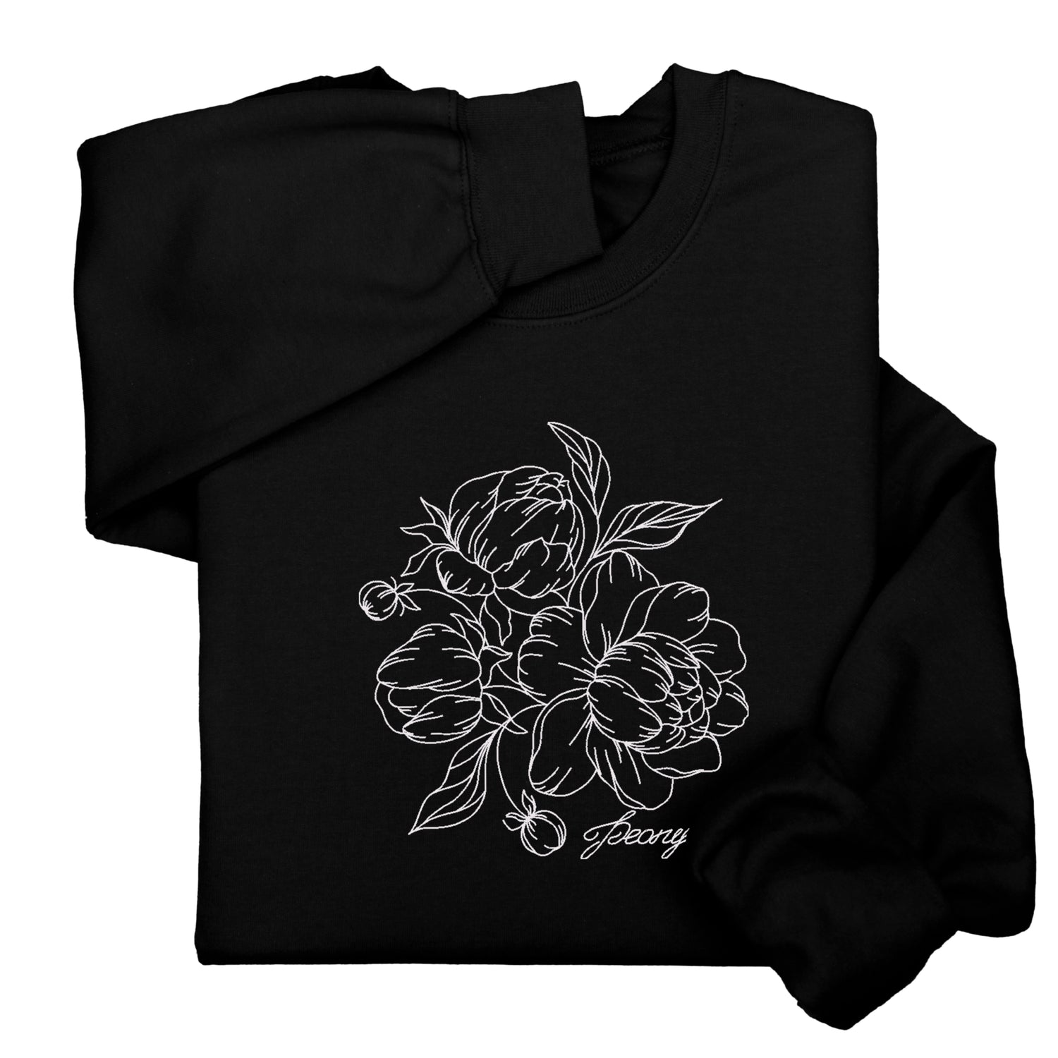Custom Peony Flower Embroidered Hoodie & Sweatshirt, Personalized Botanical Gift, Line Art Floral Pullover, Minimal Nature-Inspired Apparel