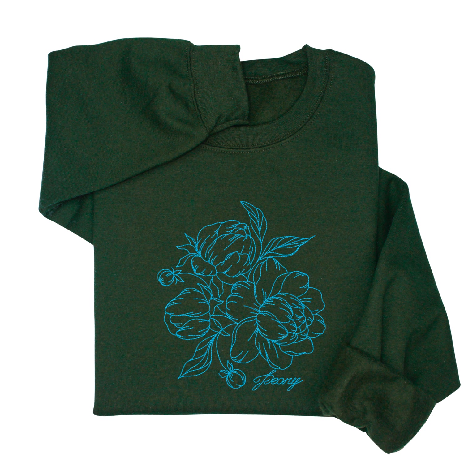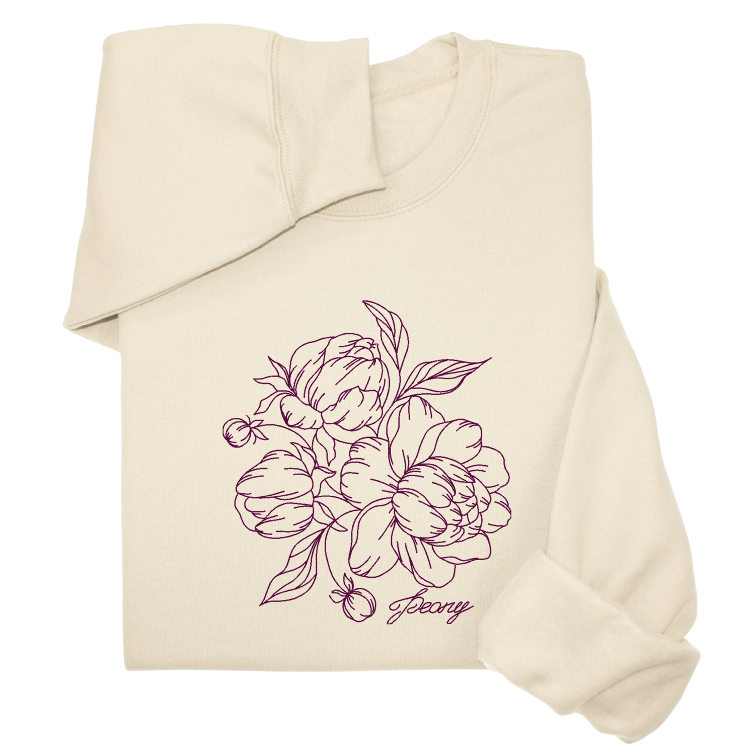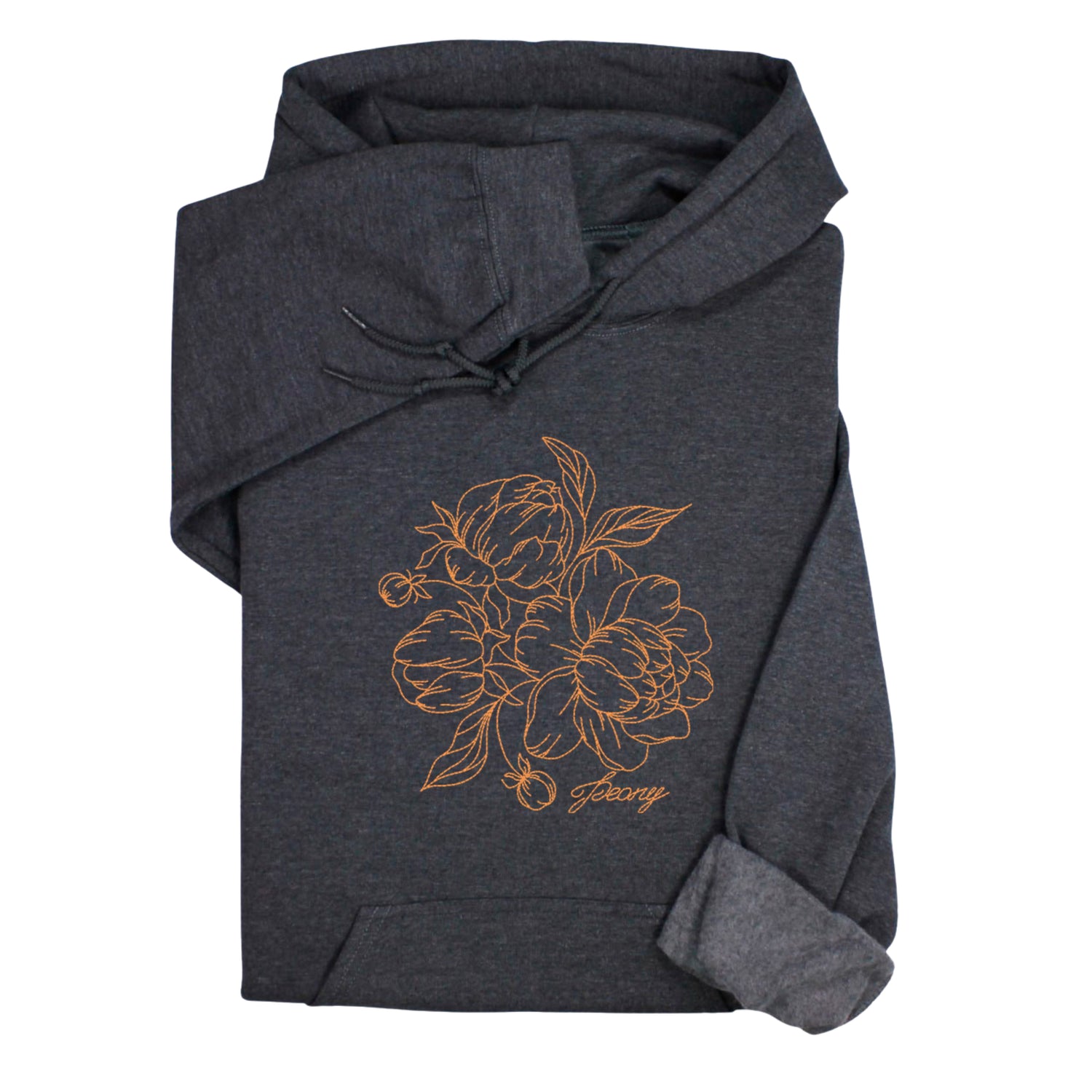 Custom Peony Flower Embroidered Hoodie & Sweatshirt, Personalized Botanical Gift, Line Art Floral Pullover, Minimal Nature-Inspired Apparel