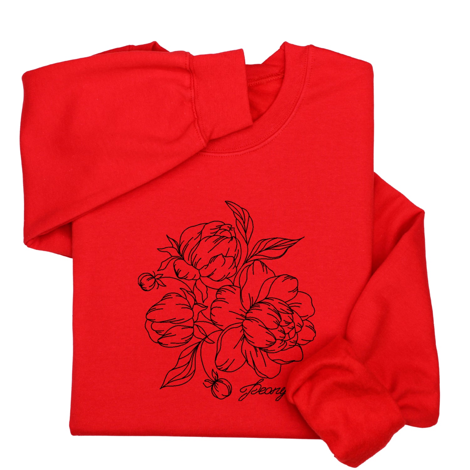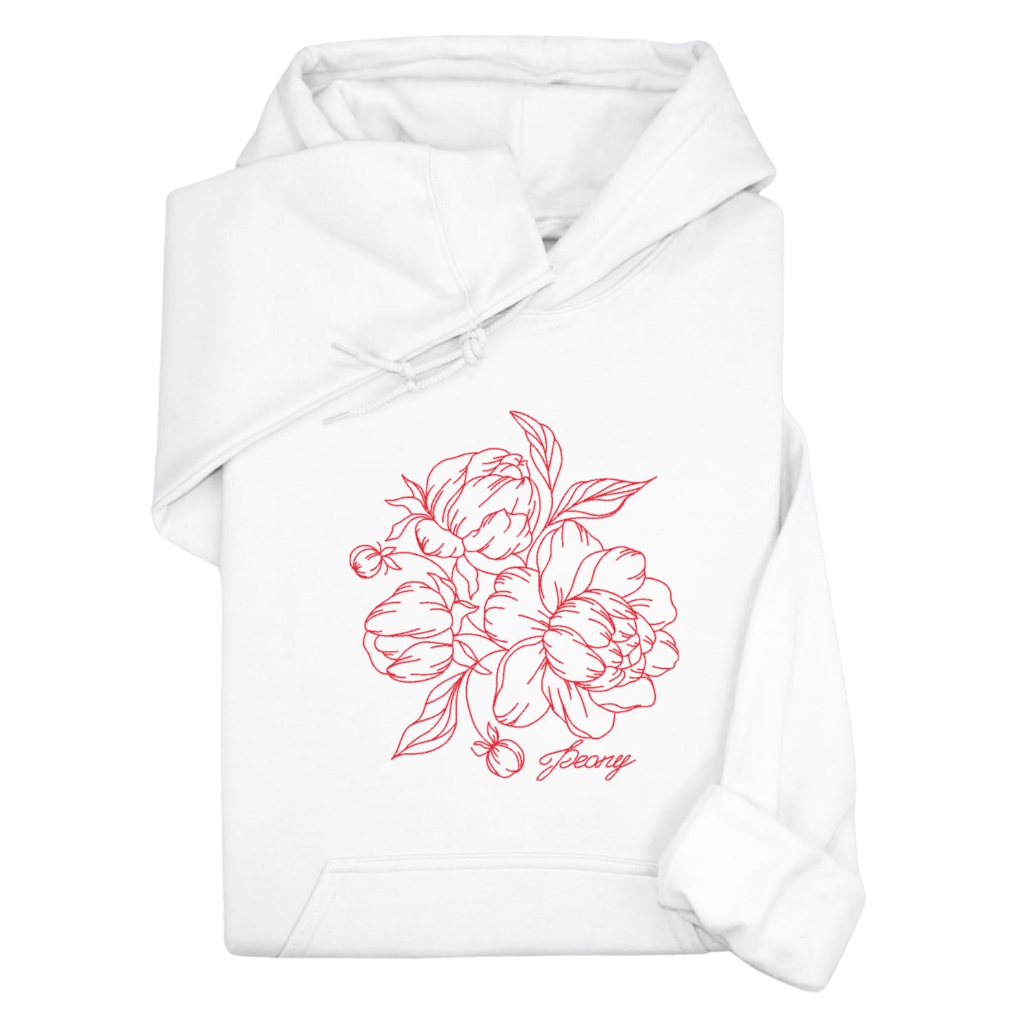 Stay cozy in this unisex hoodie or sweatshirt featuring a delicate embroidered peony in a minimal line art style. You can choose from four elegant thread colors — black, red, pink, or white — to match your personal taste. A soft, stylish, and nature-inspired piece for any season.