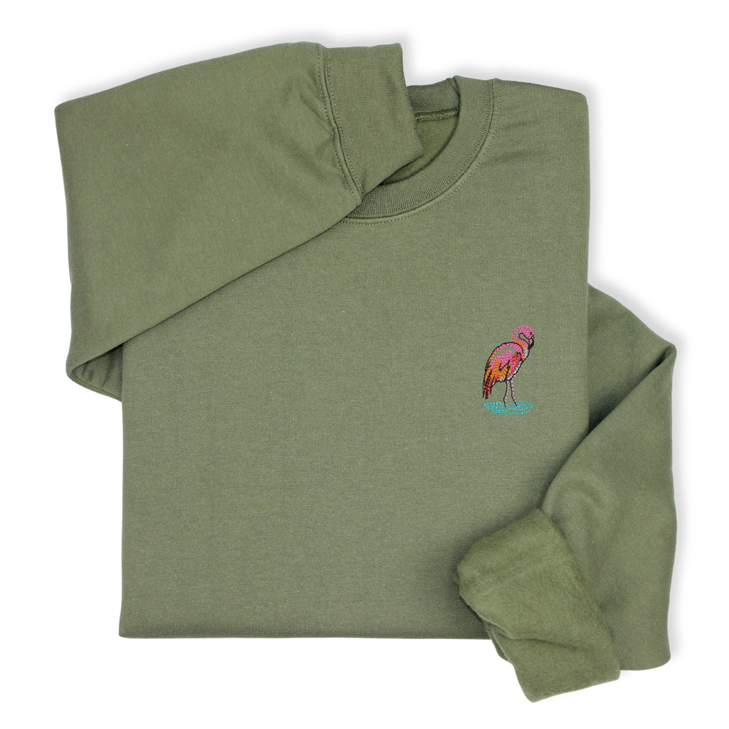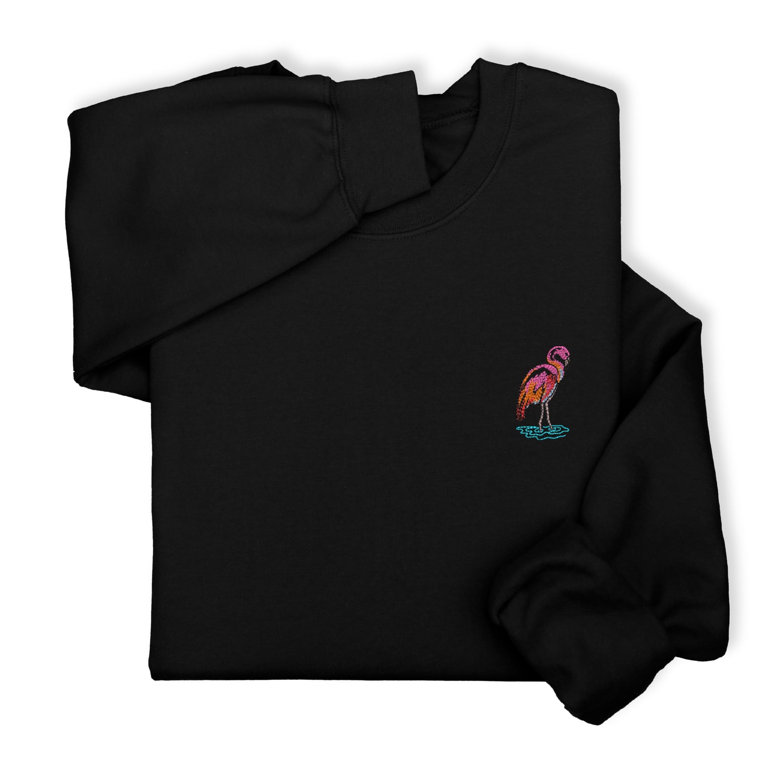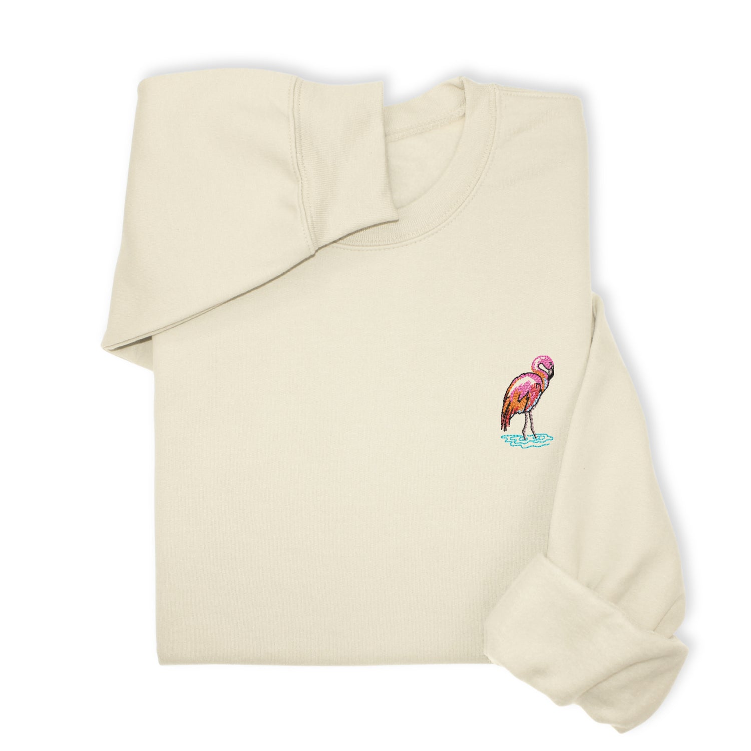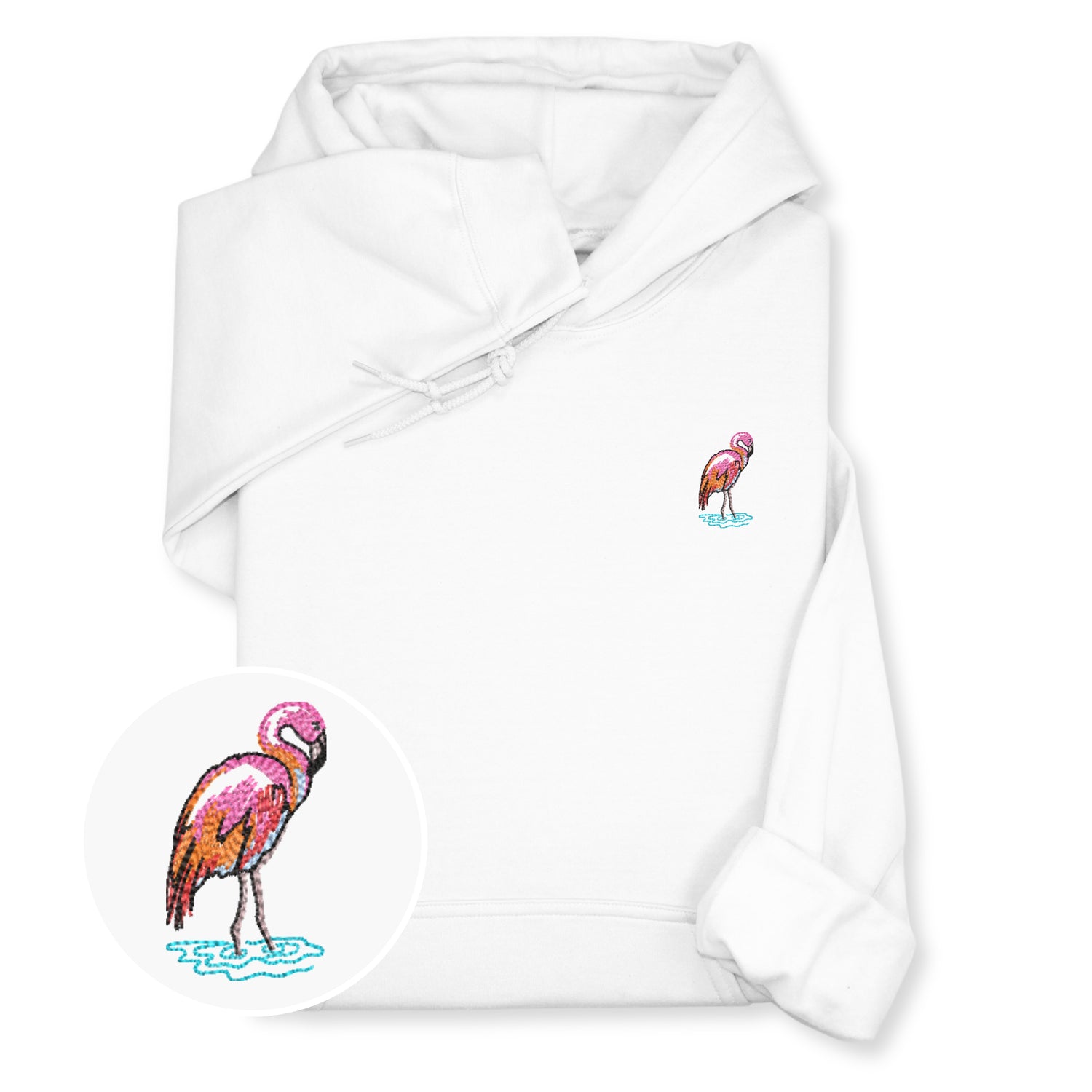 Bring tropical vibes to your wardrobe with this adorable flamingo embroidered hoodie or sweatshirt. Featuring a charming pink flamingo wading in water, this design adds a playful coastal touch to your cozy everyday look.