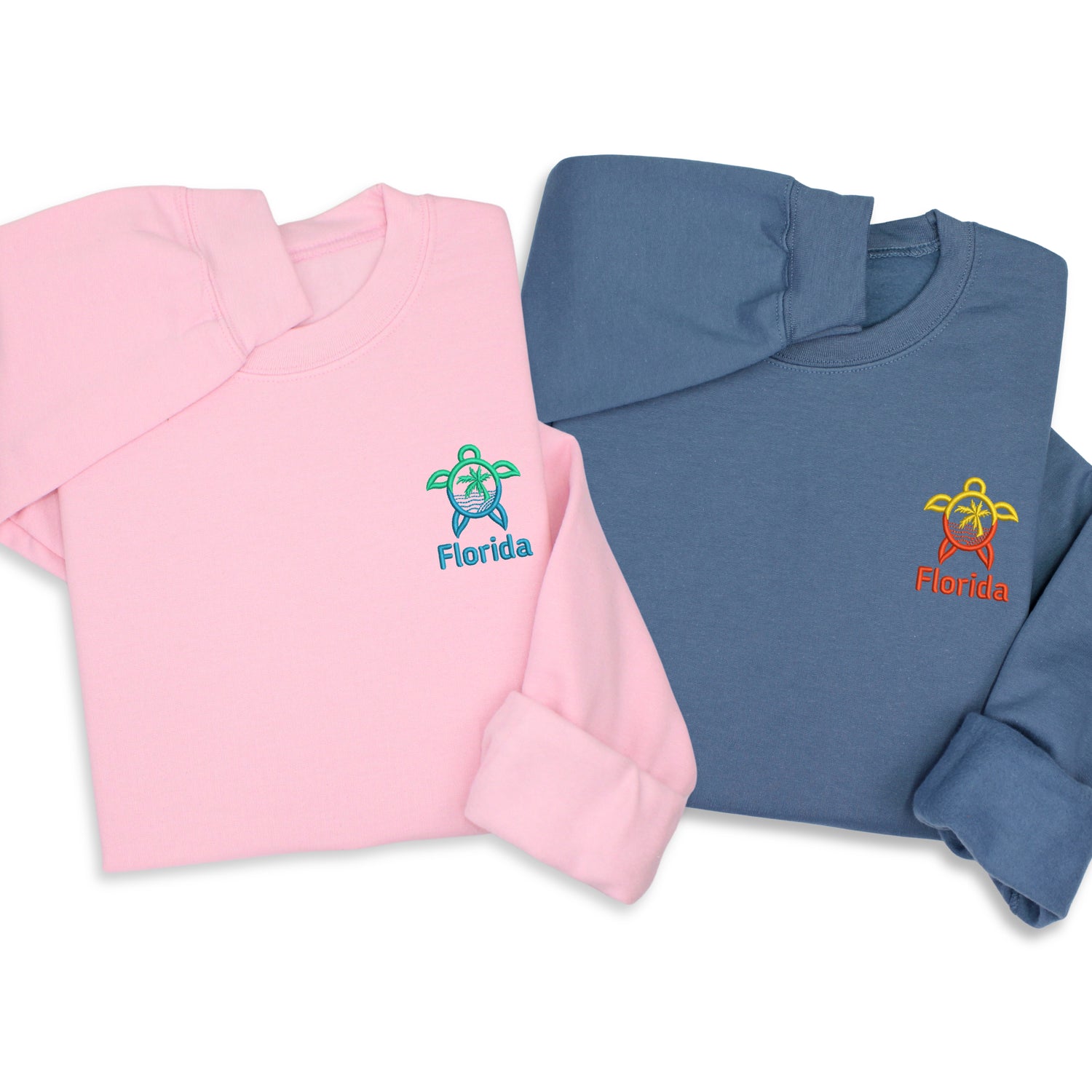 Florida Turtle Embroidered Hoodie & Sweatshirt, Sea Turtle Embroidery Pullover, Coastal Vacation Gift, Unisex Florida Beach Apparel