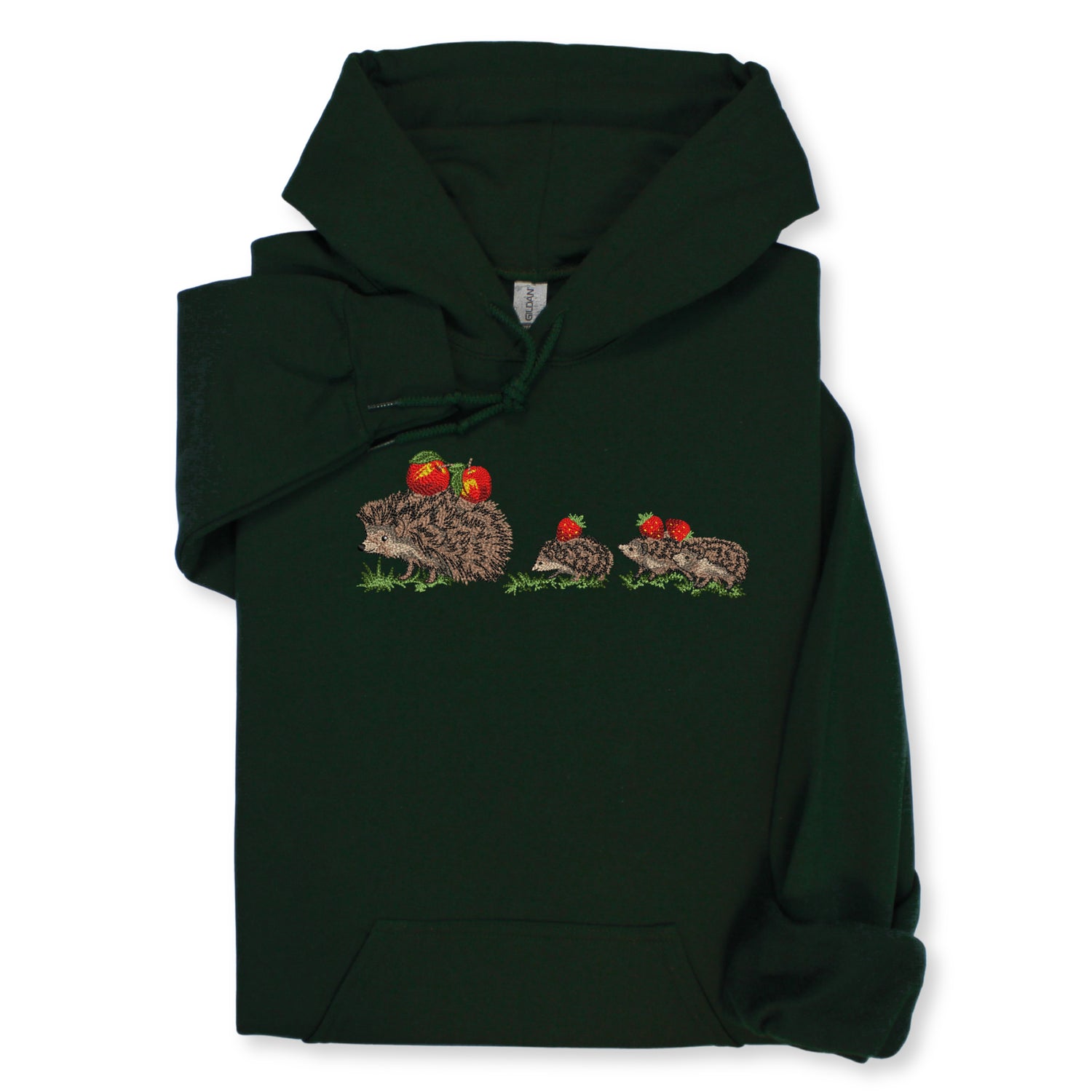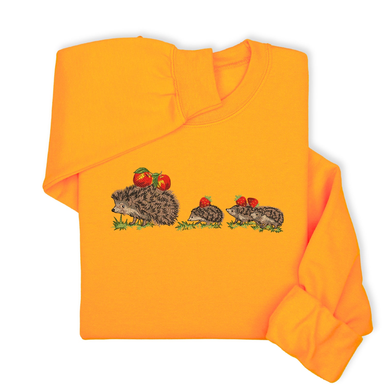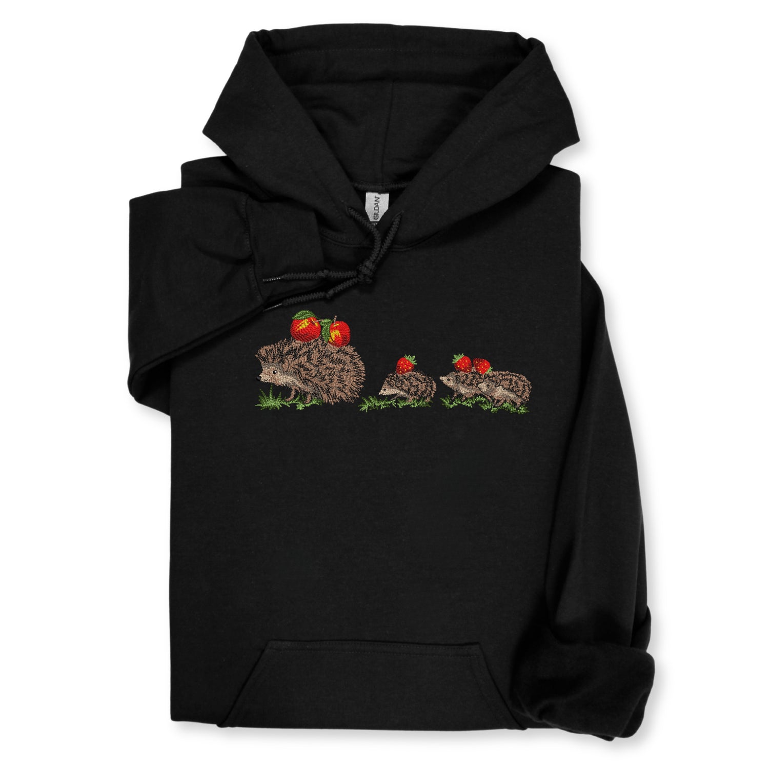 Hedgehog Family Embroidered Hoodie & Sweatshirt, Cute Forest Animal Top, Whimsical Nature Lover Gift, Woodland Wildlife Unisex Apparel
