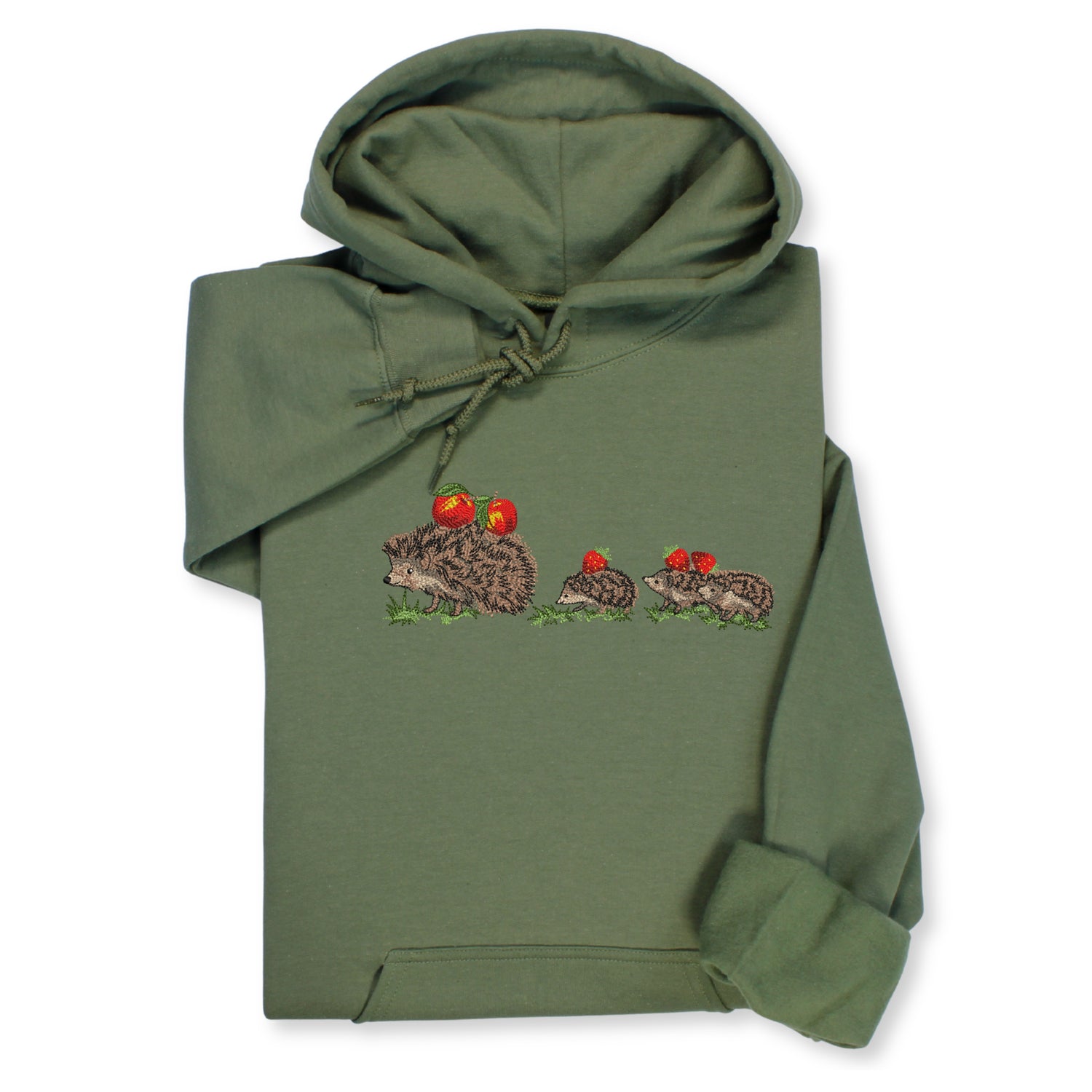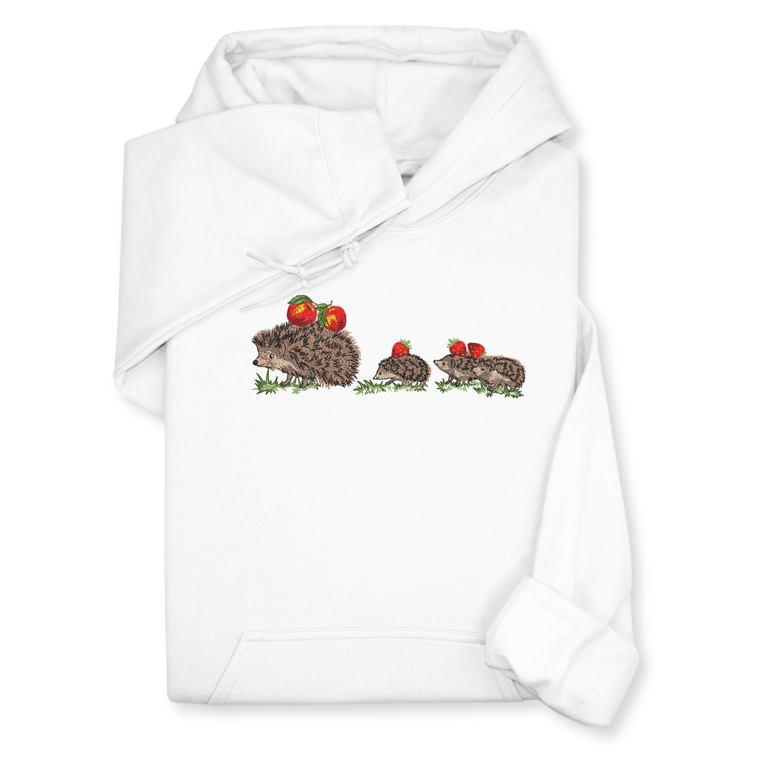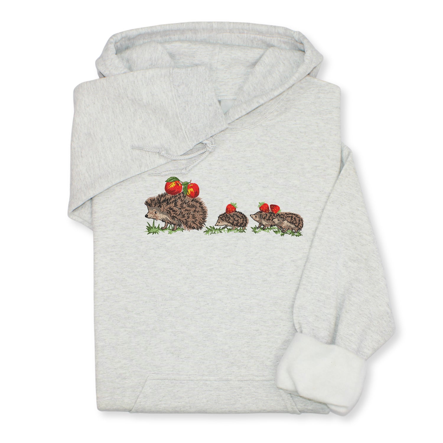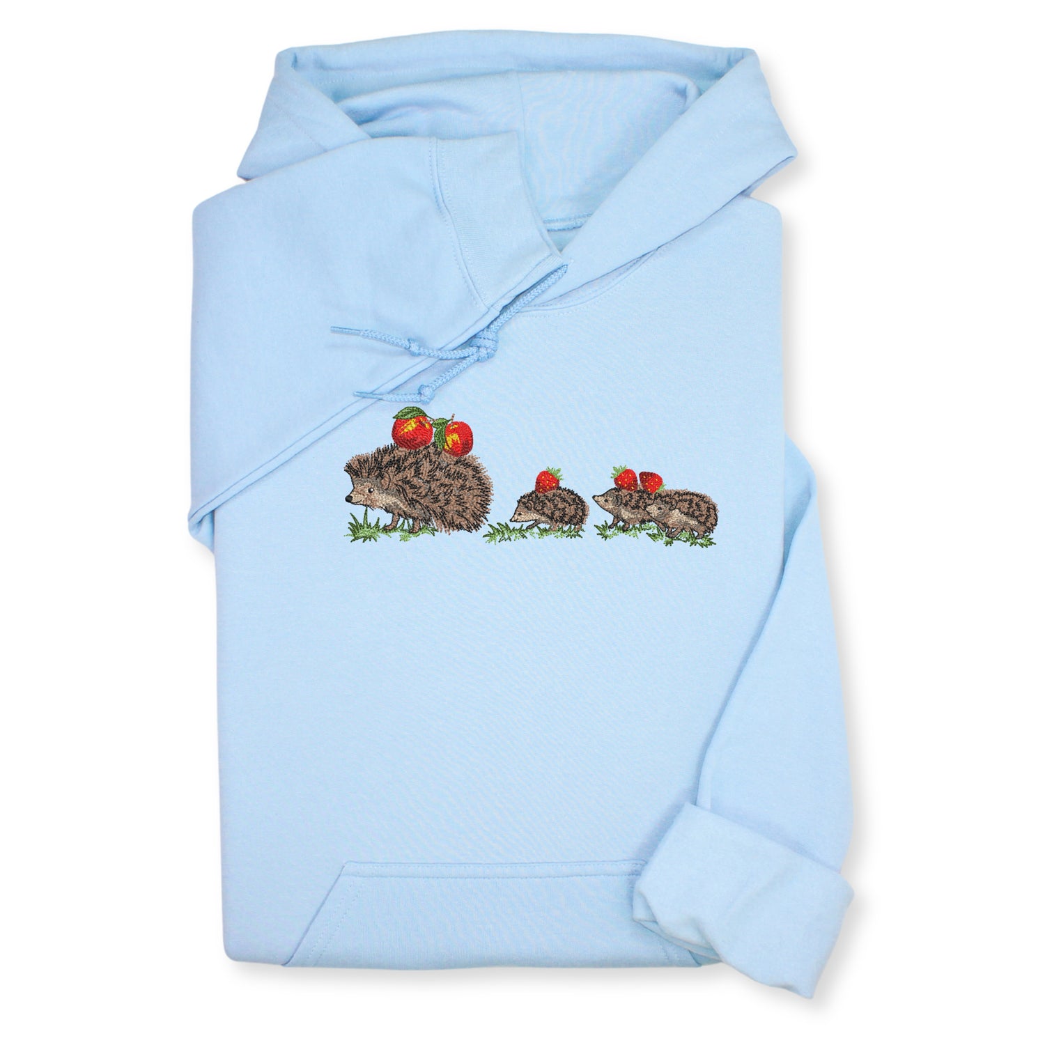 Hedgehog Family Embroidered Hoodie & Sweatshirt, Cute Forest Animal Top, Whimsical Nature Lover Gift, Woodland Wildlife Unisex Apparel