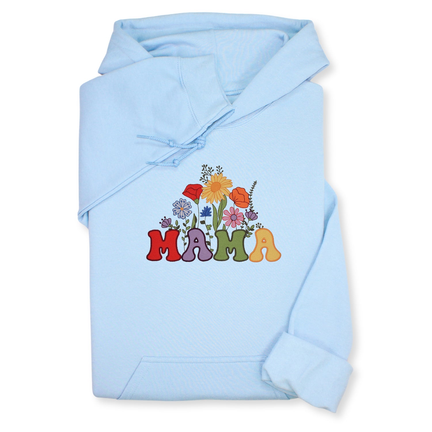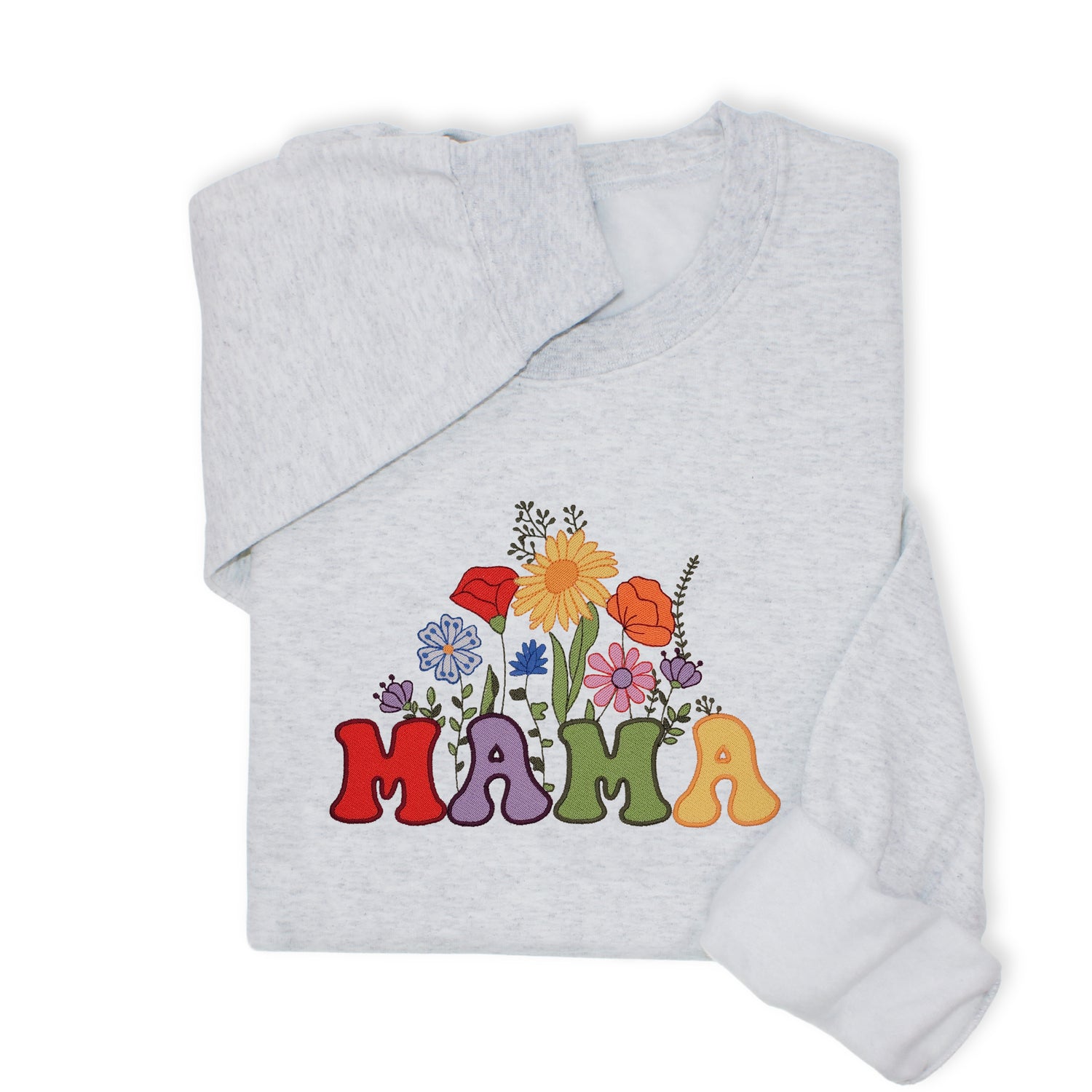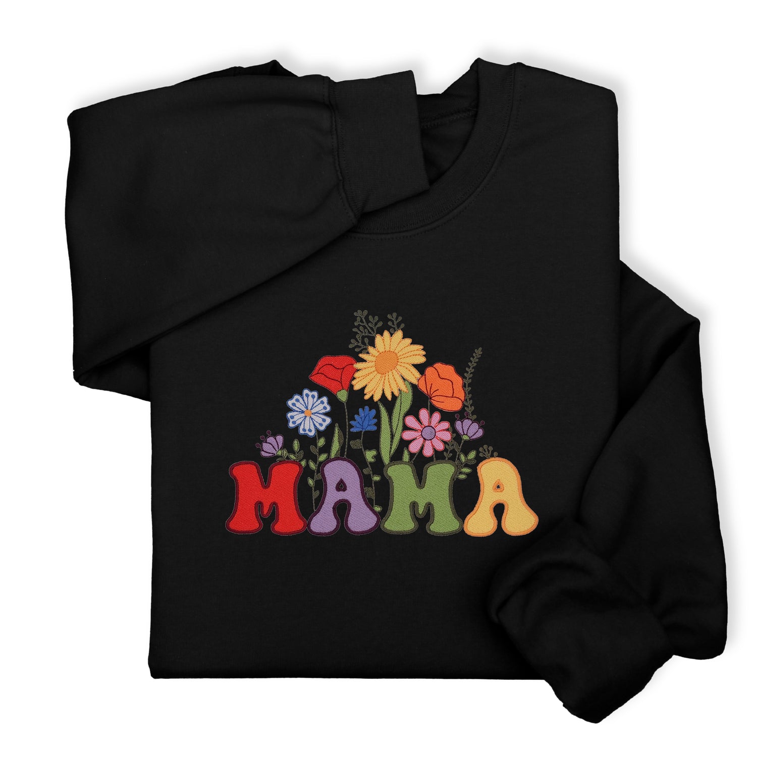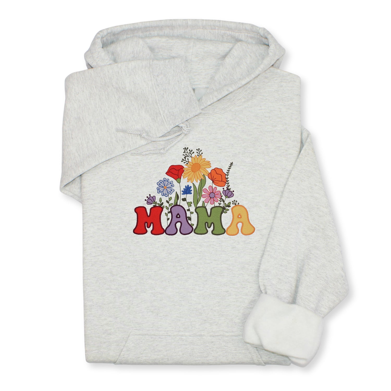 Wrap her in warmth and love with this cozy unisex hoodie or sweatshirt featuring a colorful “MAMA” embroidery surrounded by blooming flowers. It’s a joyful and heartfelt design that blends comfort with vibrant celebration — perfect for any proud mama.