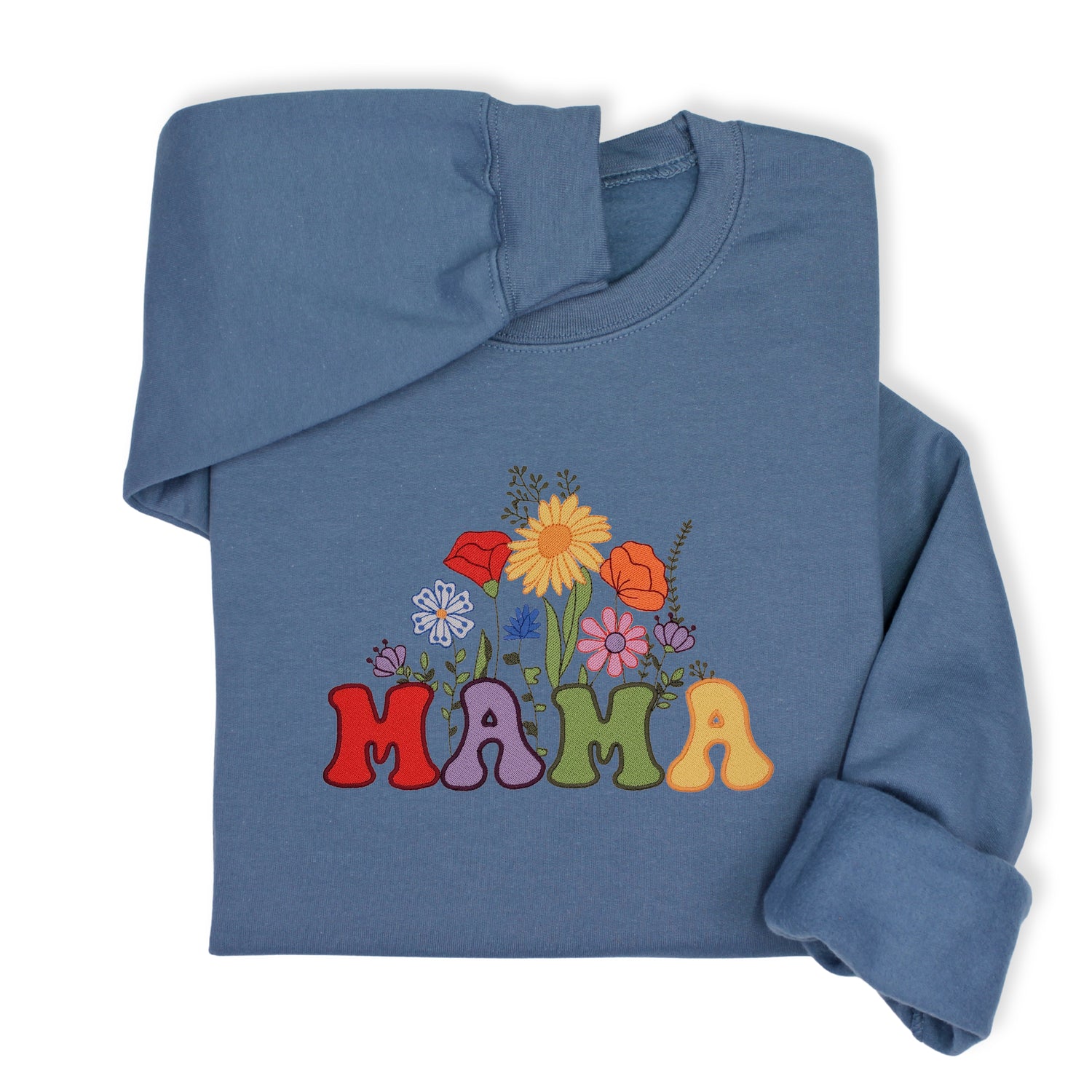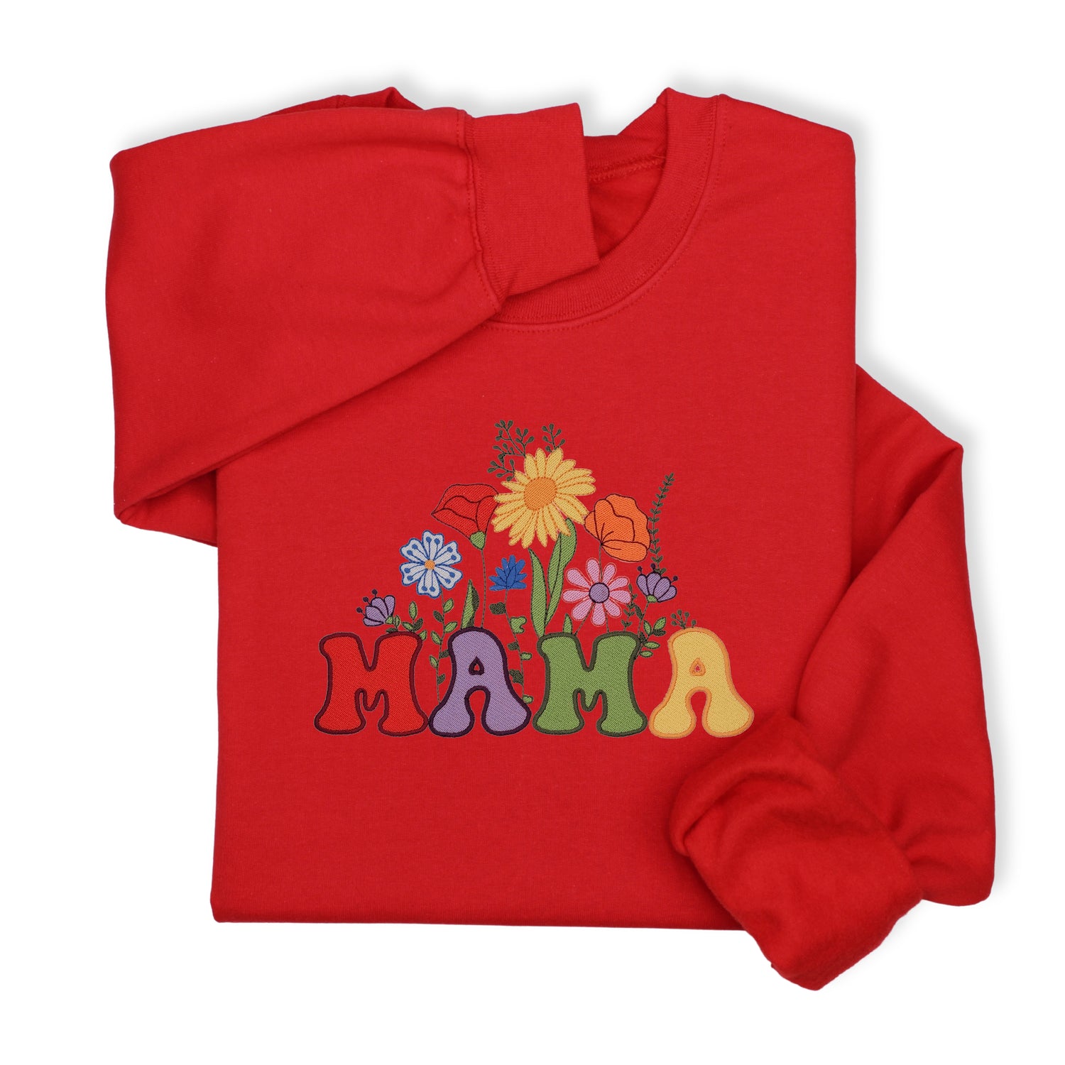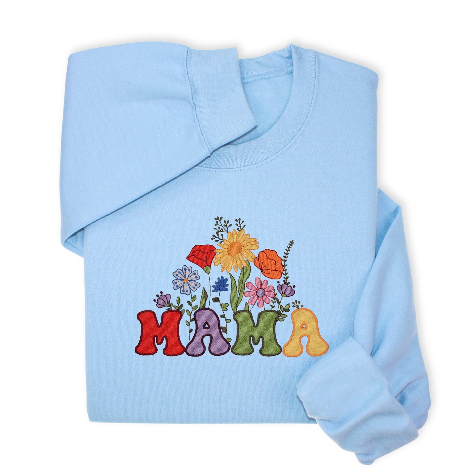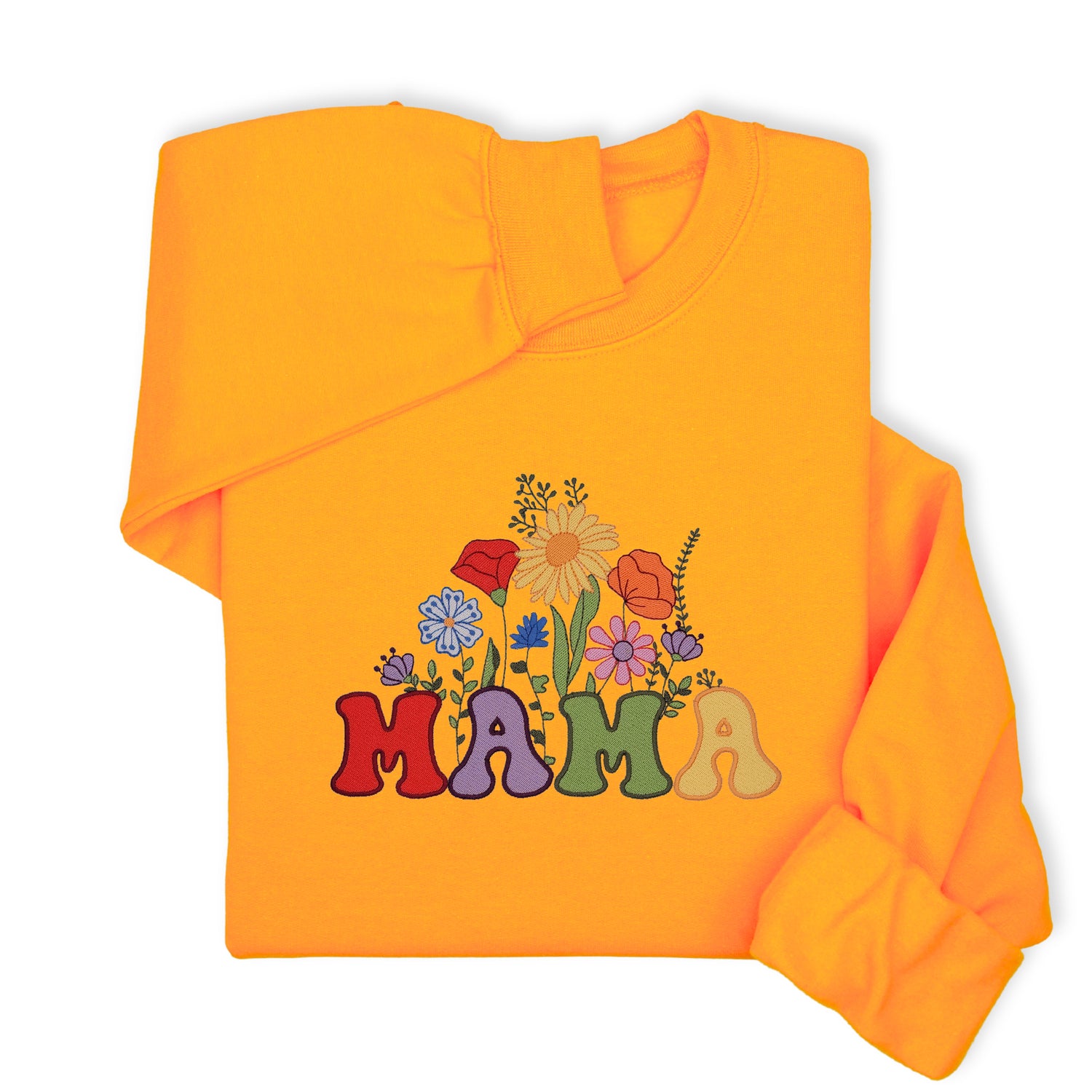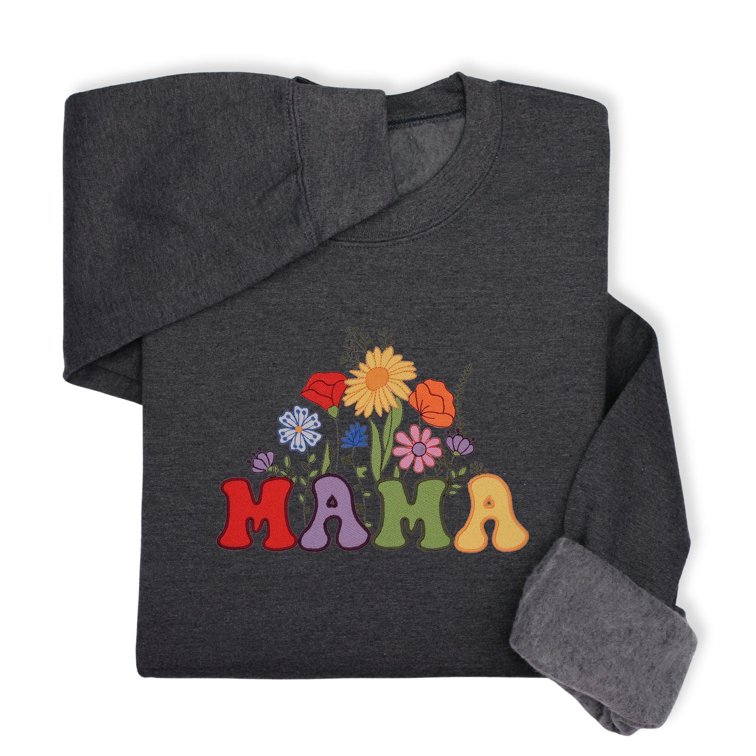 Wrap her in warmth and love with this cozy unisex hoodie or sweatshirt featuring a colorful “MAMA” embroidery surrounded by blooming flowers. It’s a joyful and heartfelt design that blends comfort with vibrant celebration — perfect for any proud mama.