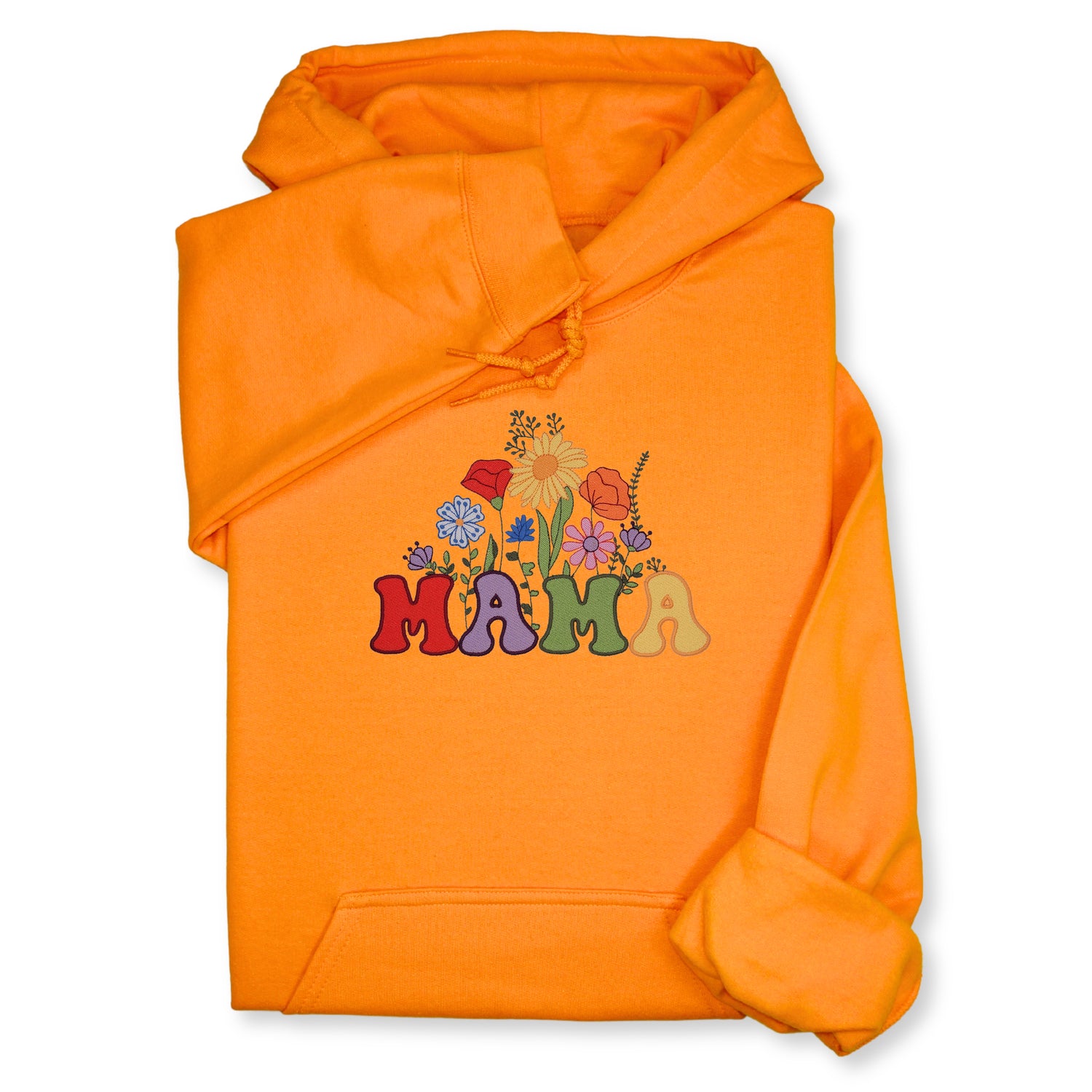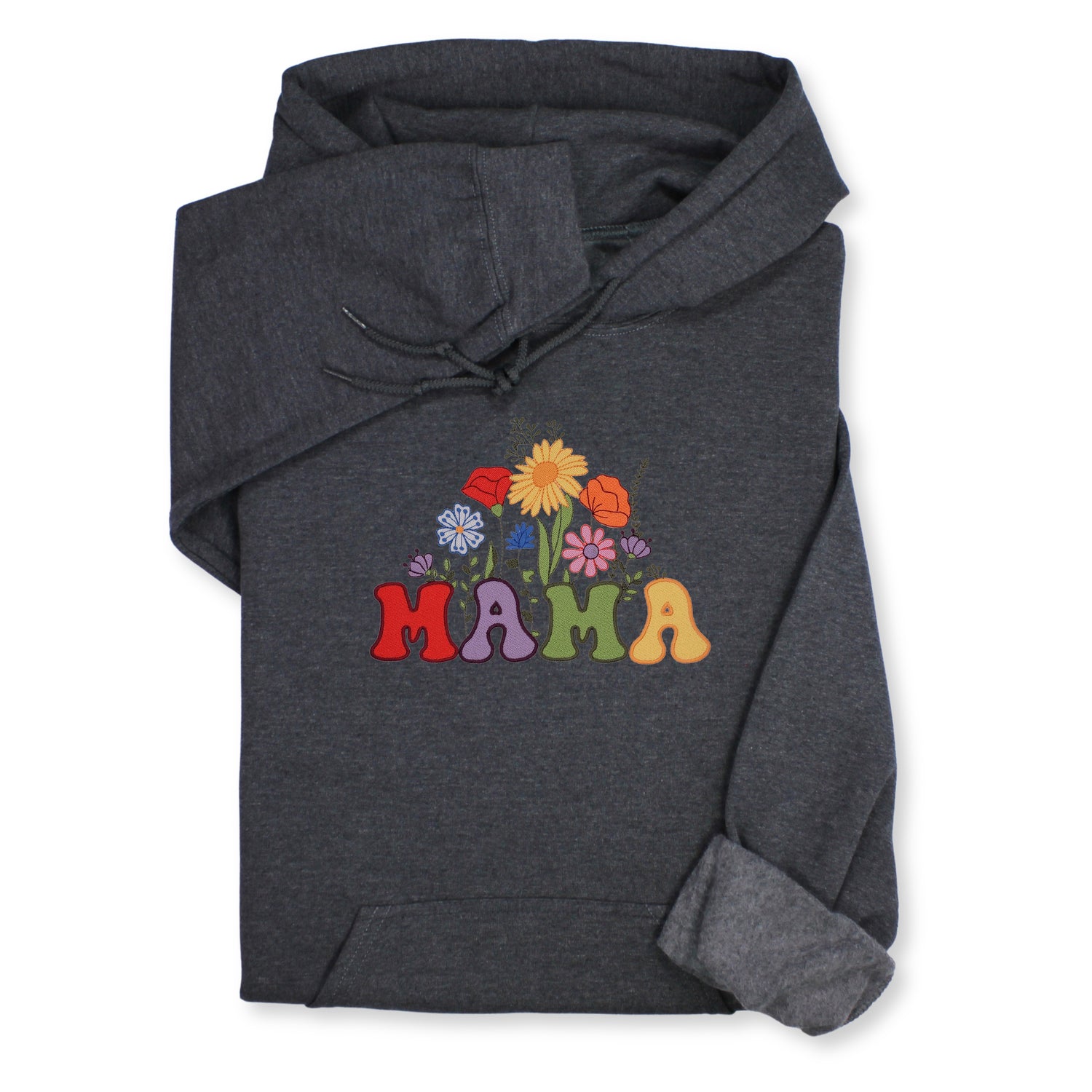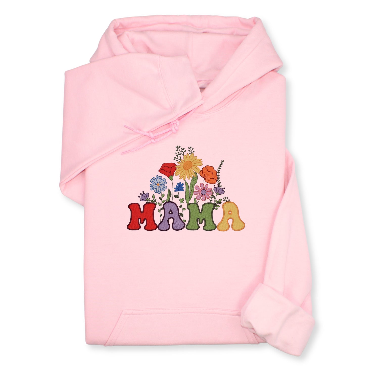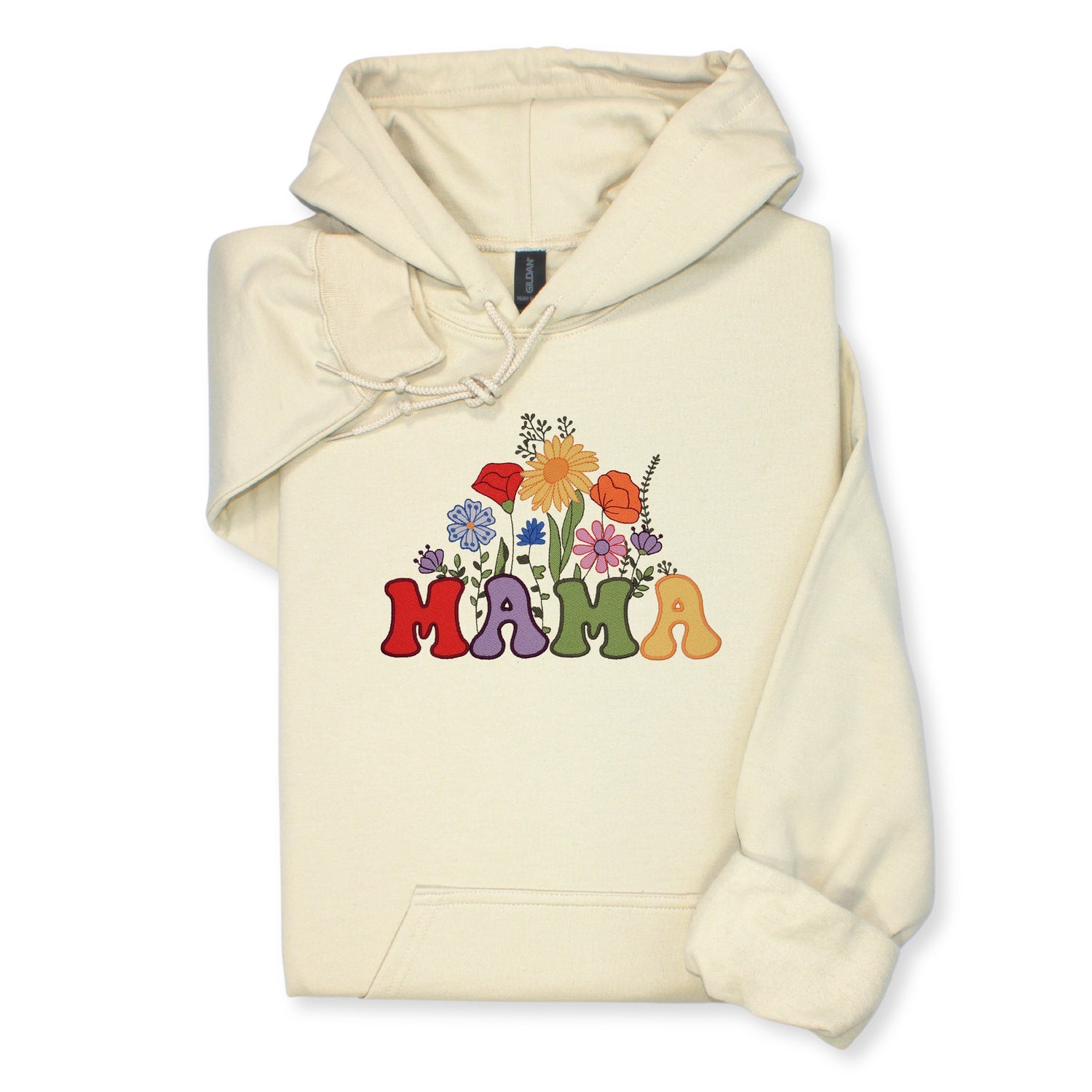 Mama Hoodie & Sweatshirt with Colorful Floral Print, Retro Groovy Mom Gift, Cute Flower Power Pullover, Mother's Day Cozy Apparel