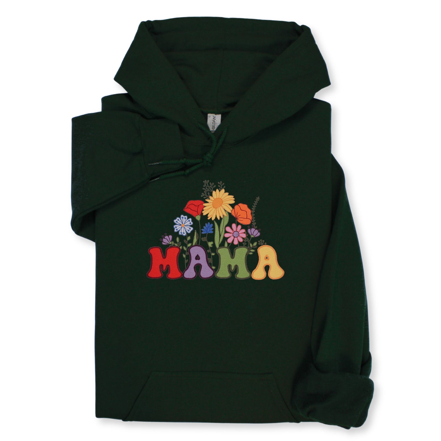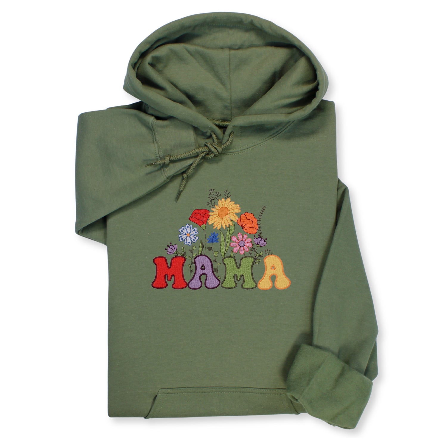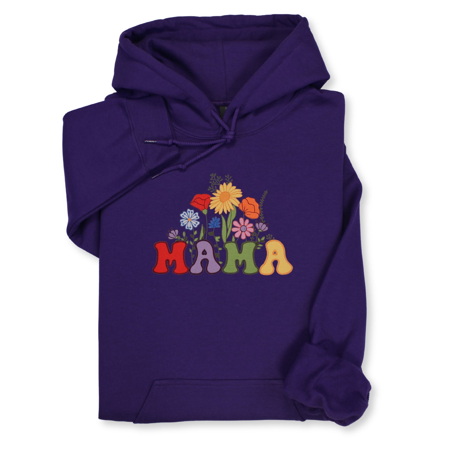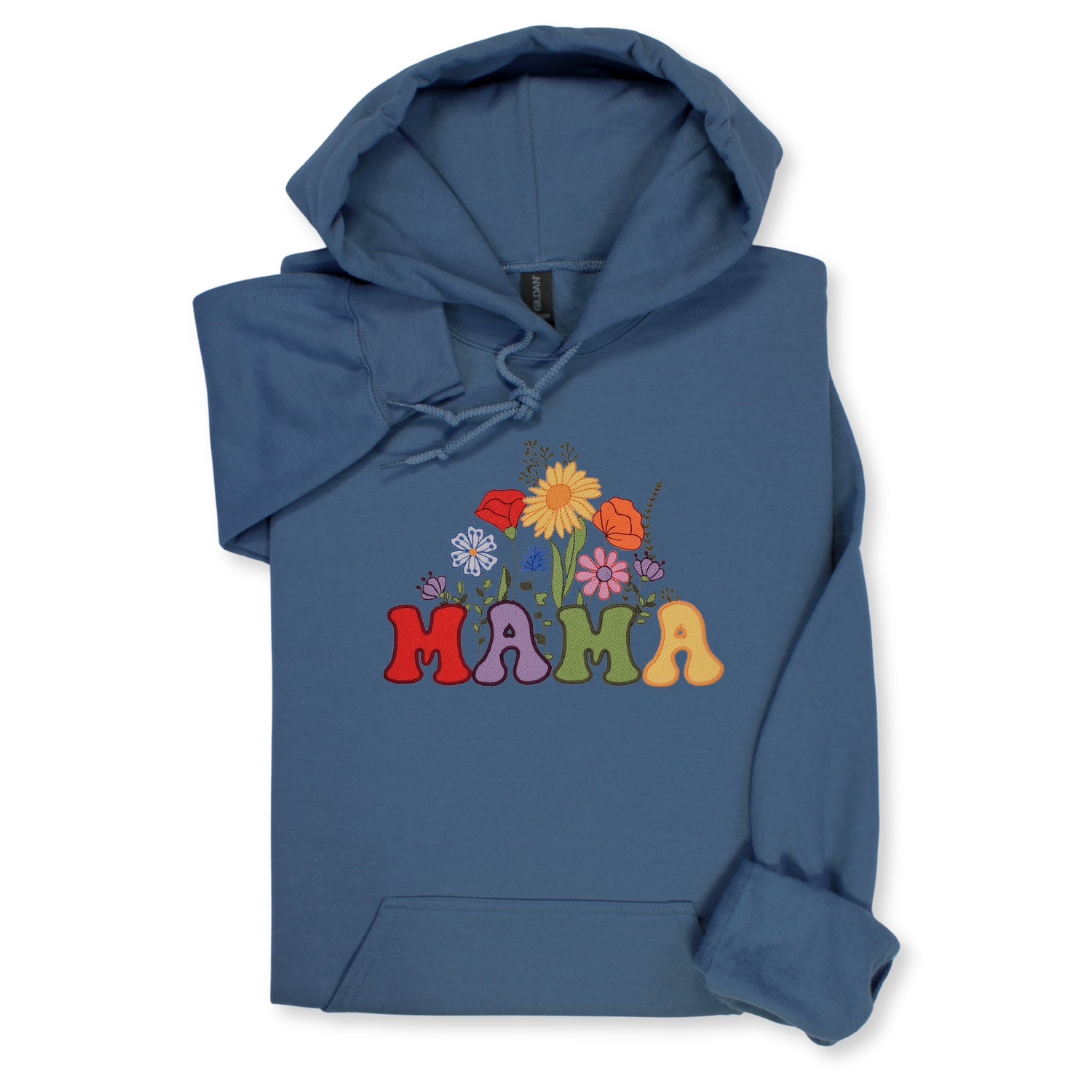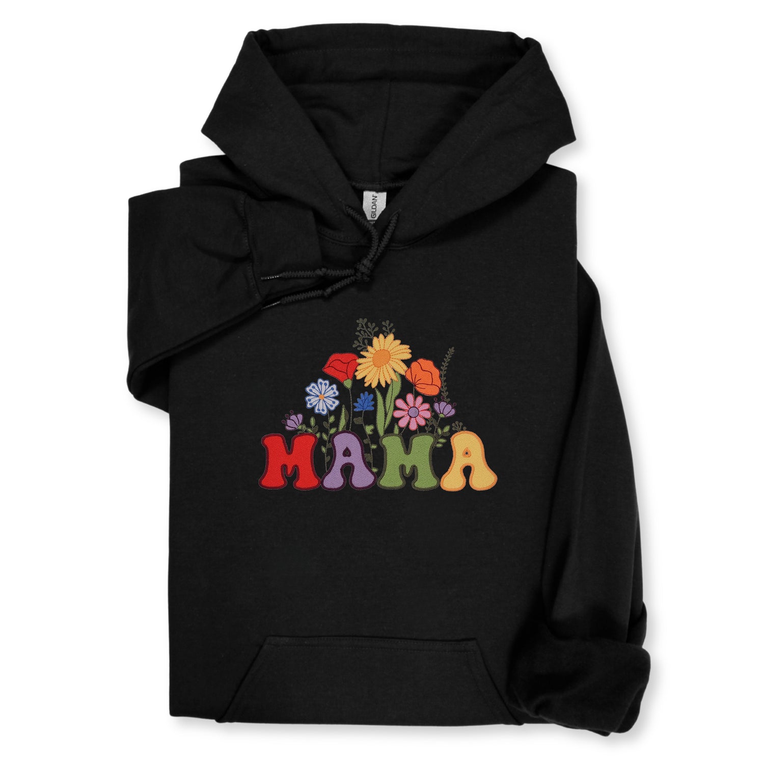 Mama Hoodie & Sweatshirt with Colorful Floral Print, Retro Groovy Mom Gift, Cute Flower Power Pullover, Mother's Day Cozy Apparel