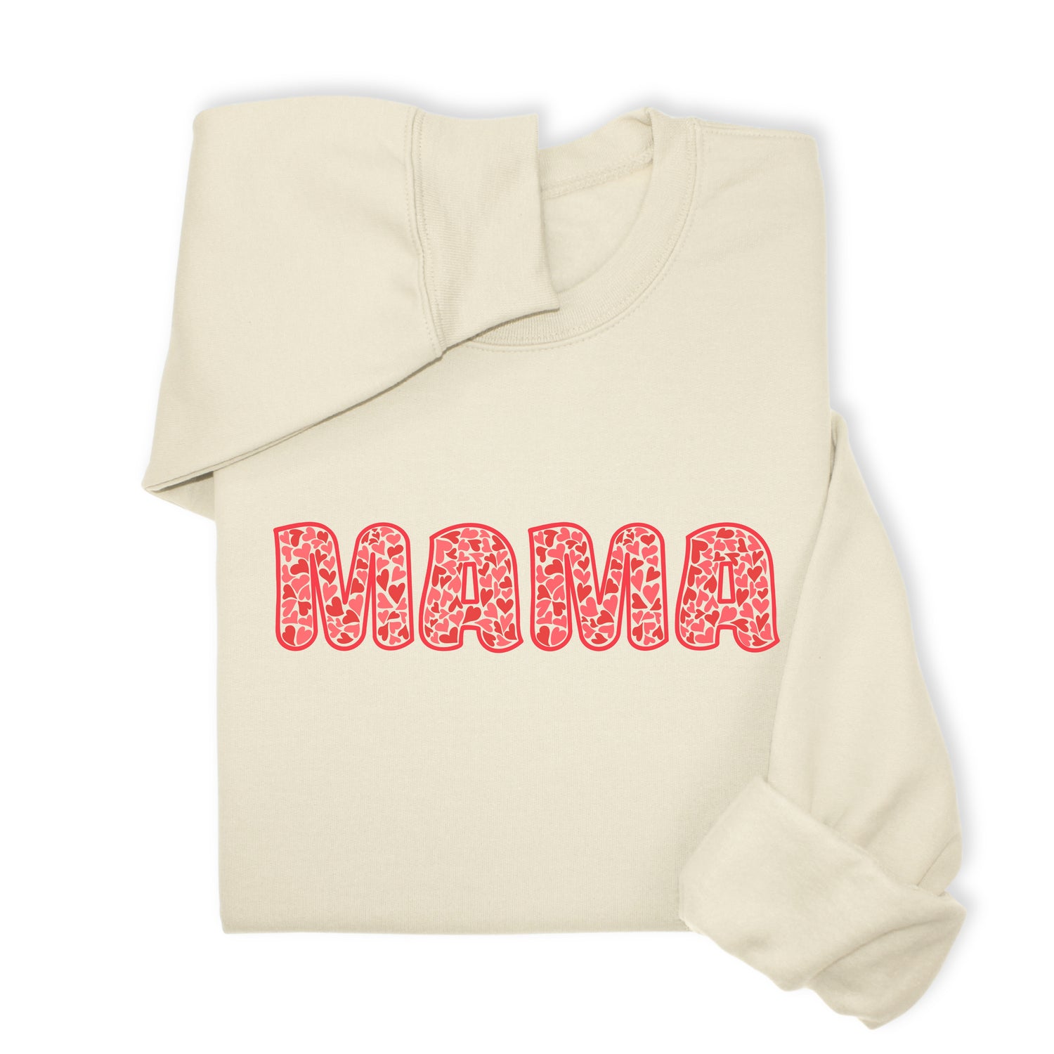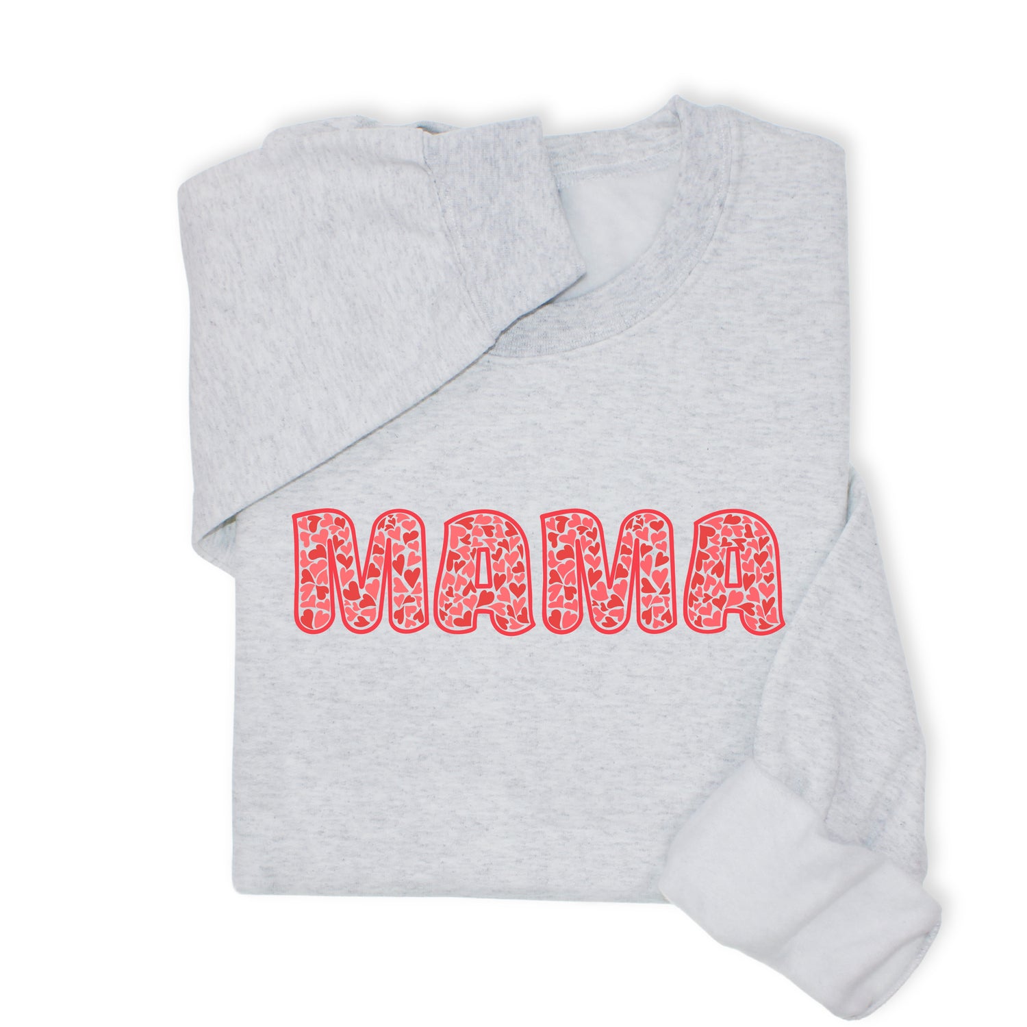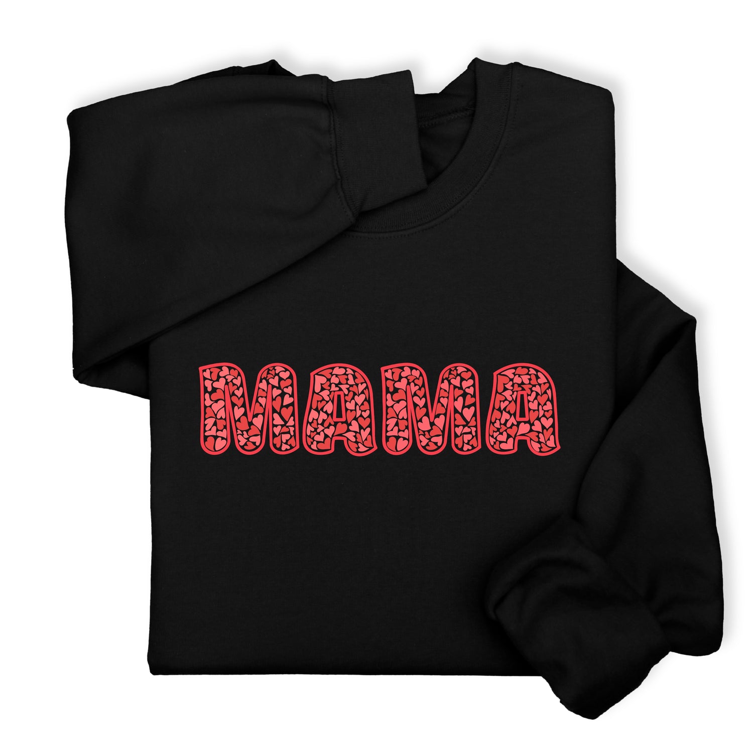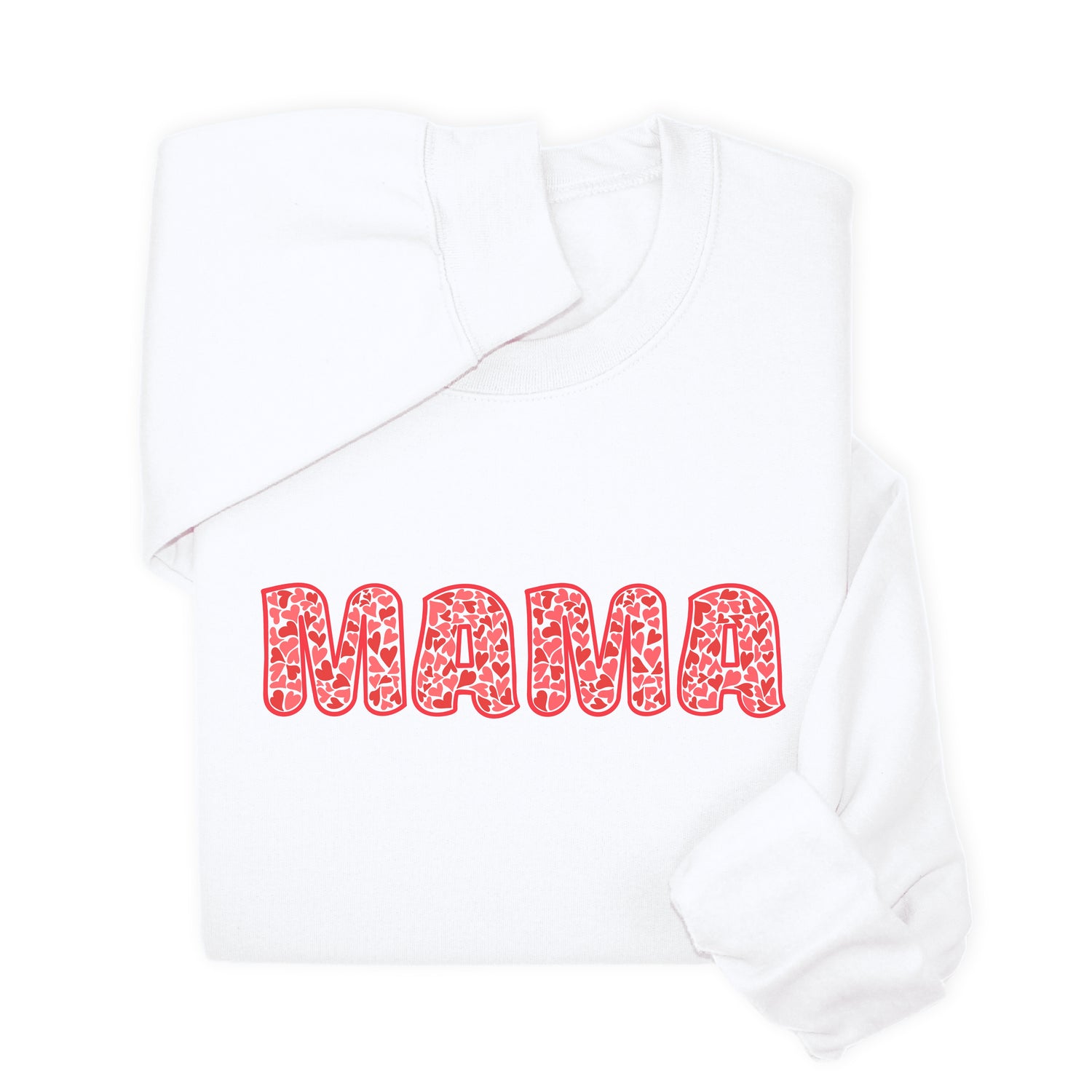 MAMA Printed Sweatshirt & Hoodie, Bold Letter Design with Heart Pattern, Cute Gift for Mom, Cozy Mother's Day Outfit, Minimalist Family Style