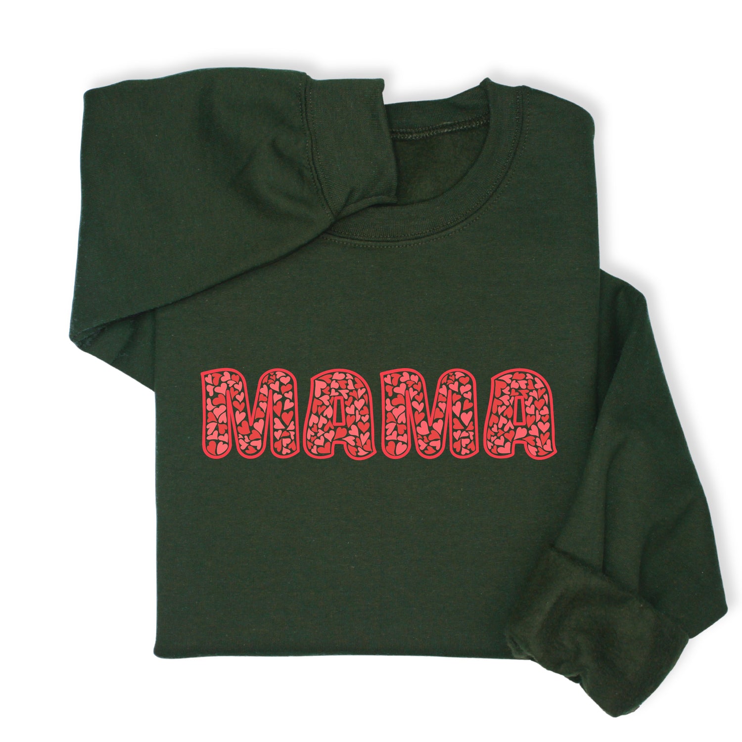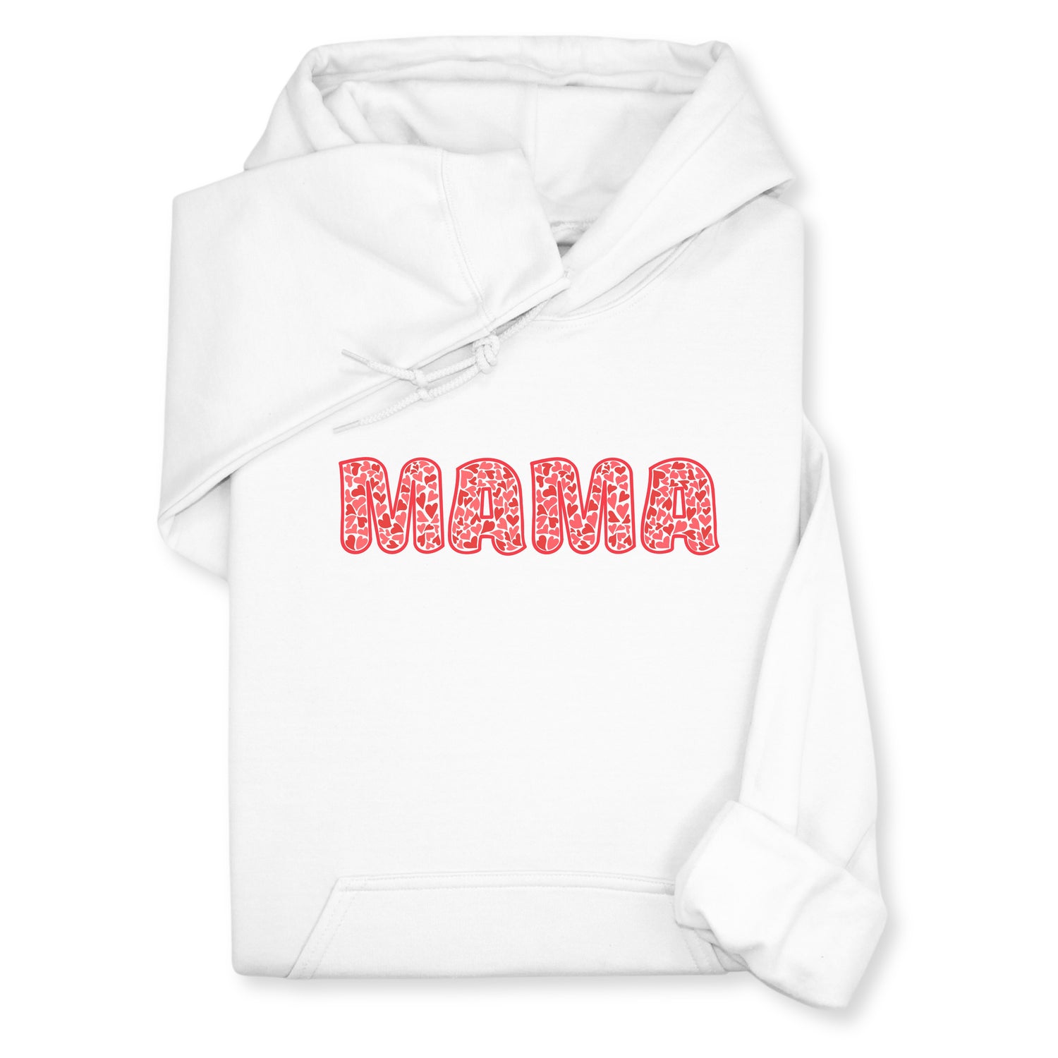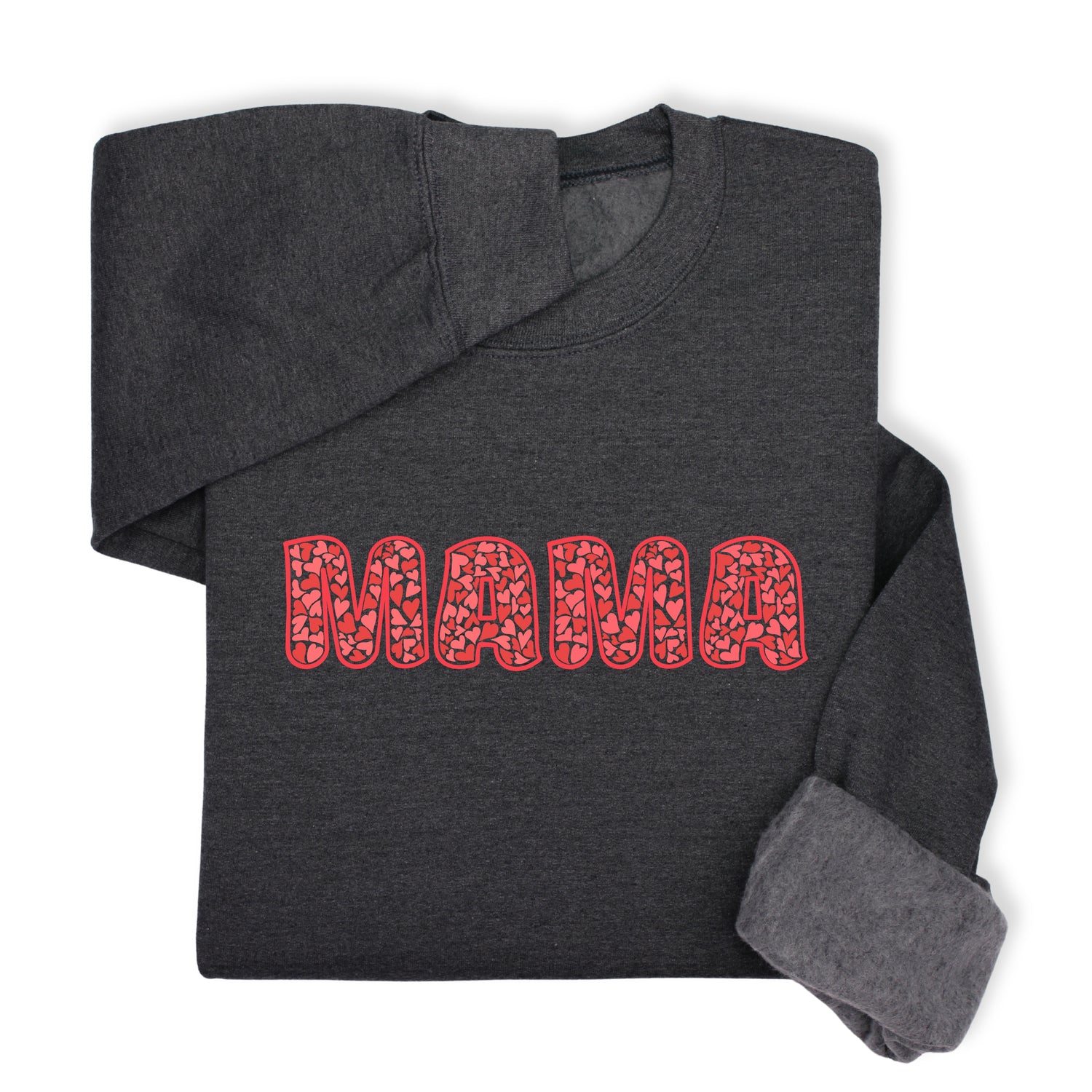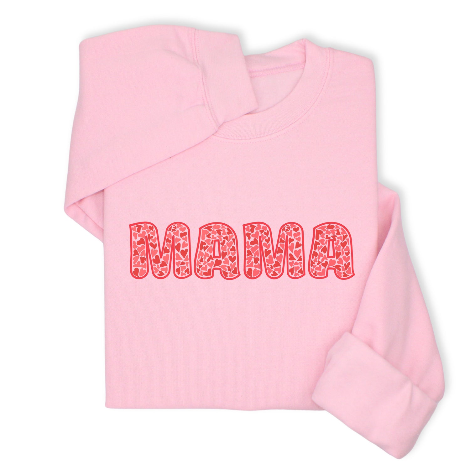 MAMA Printed Sweatshirt & Hoodie, Bold Letter Design with Heart Pattern, Cute Gift for Mom, Cozy Mother's Day Outfit, Minimalist Family Style