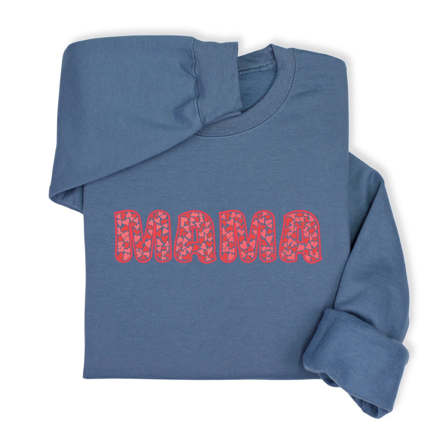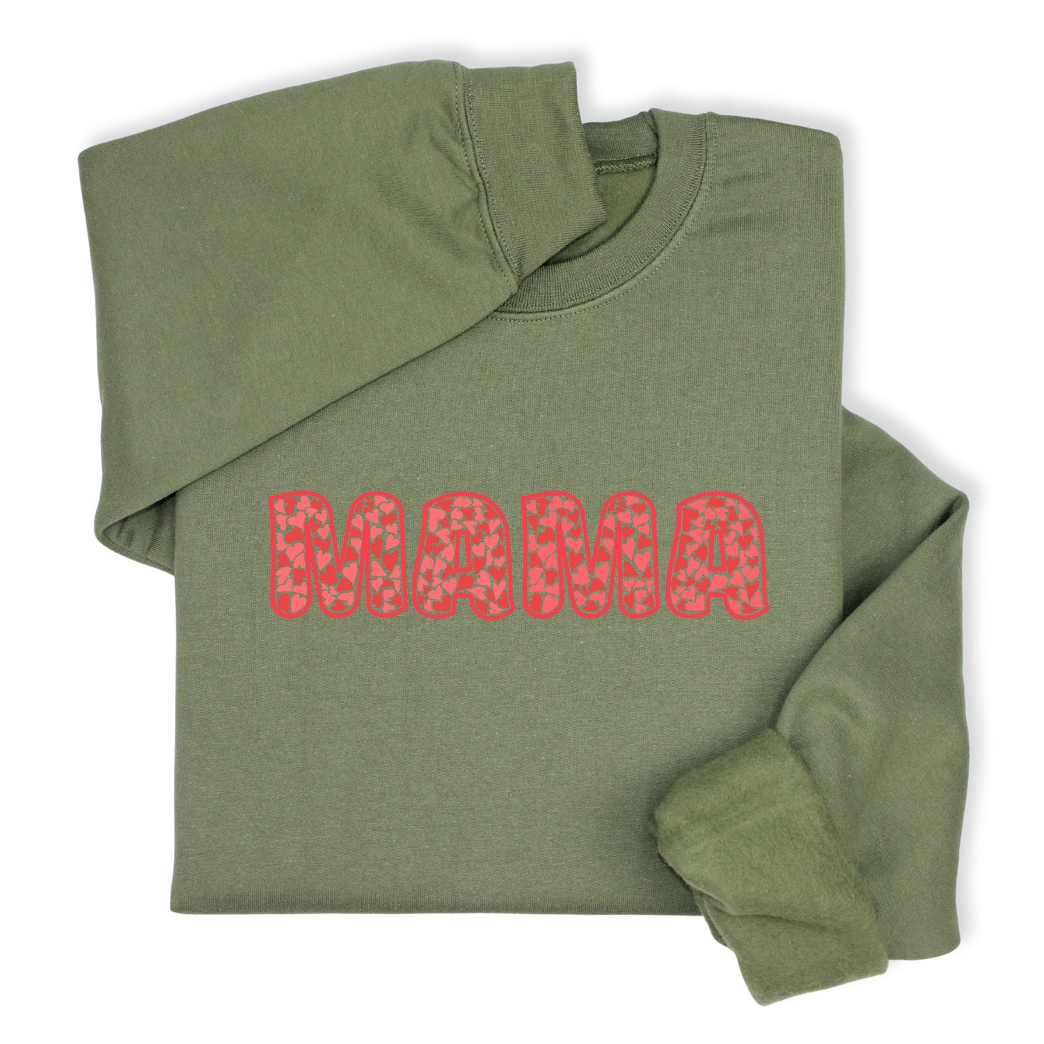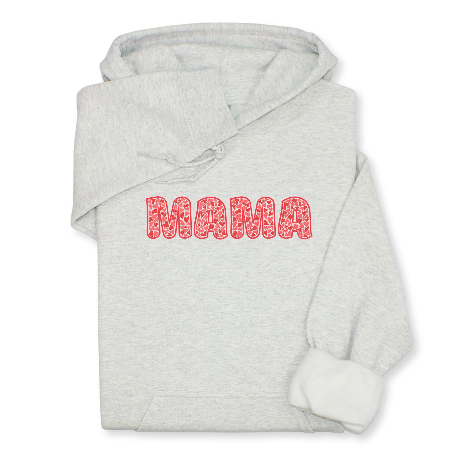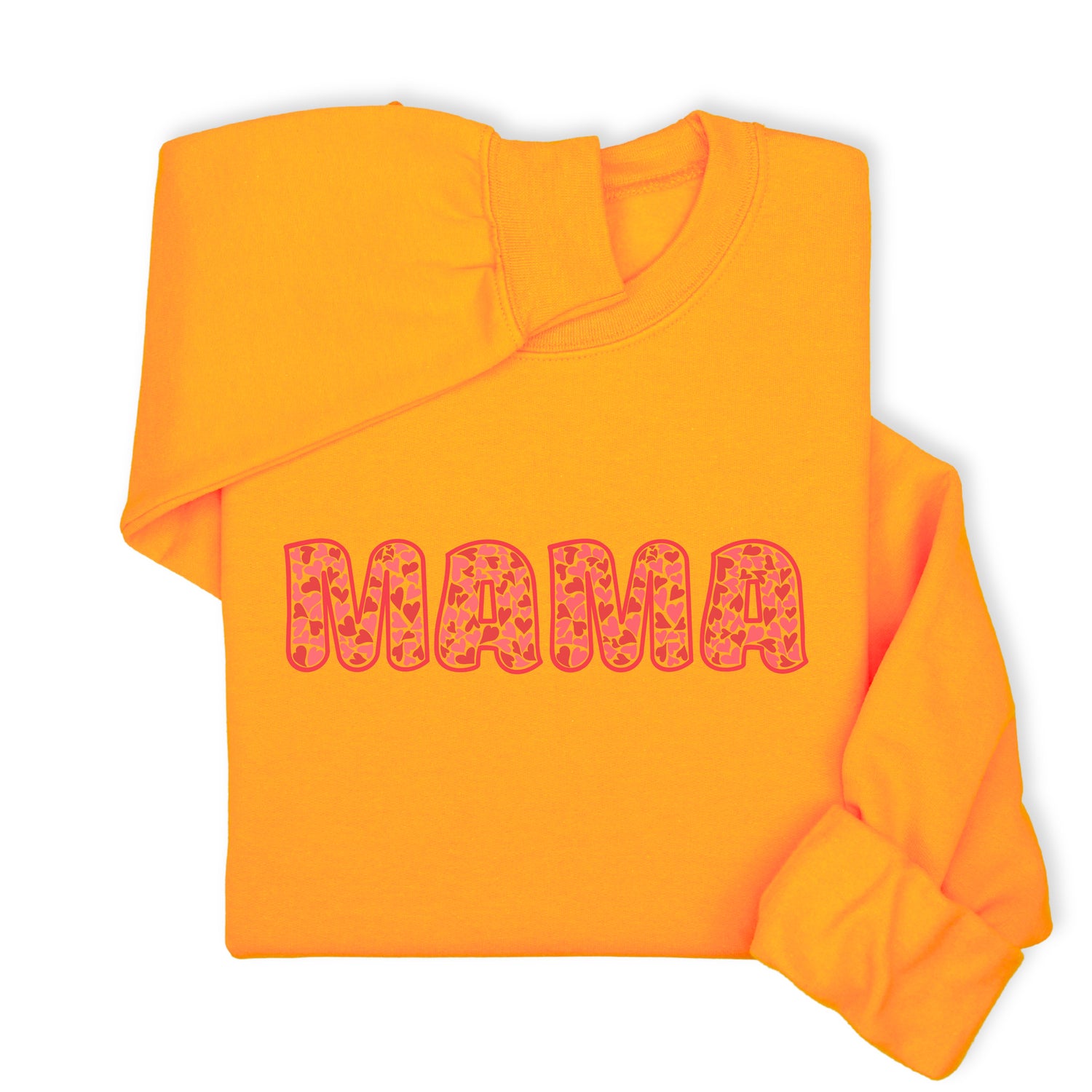 MAMA Printed Sweatshirt & Hoodie, Bold Letter Design with Heart Pattern, Cute Gift for Mom, Cozy Mother's Day Outfit, Minimalist Family Style