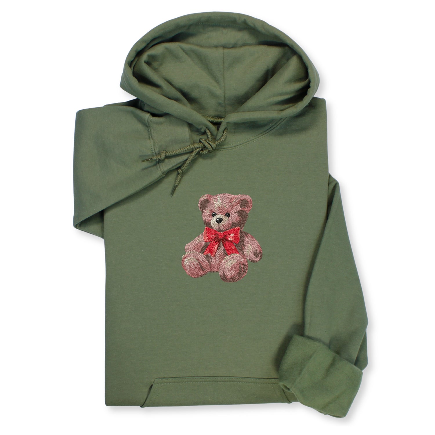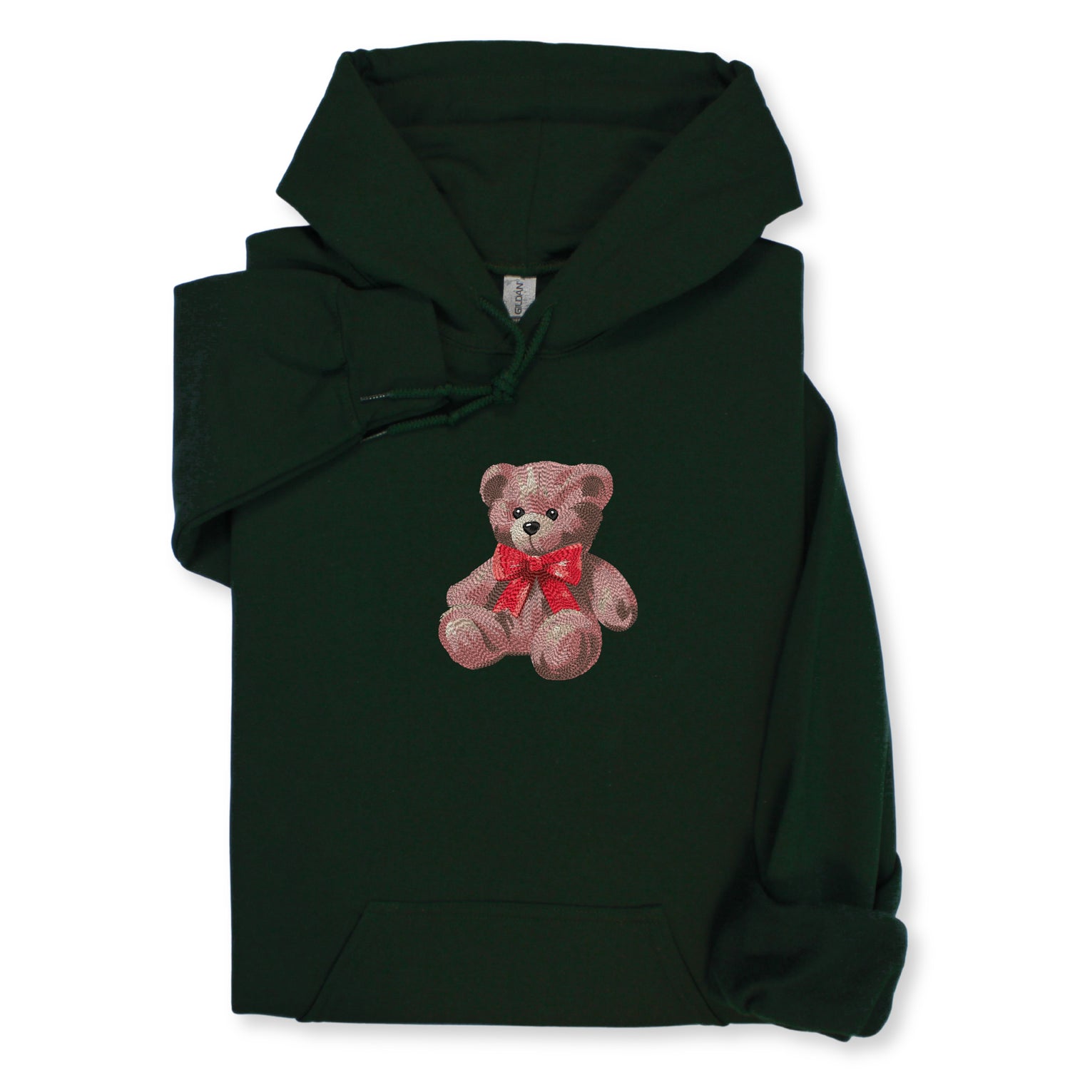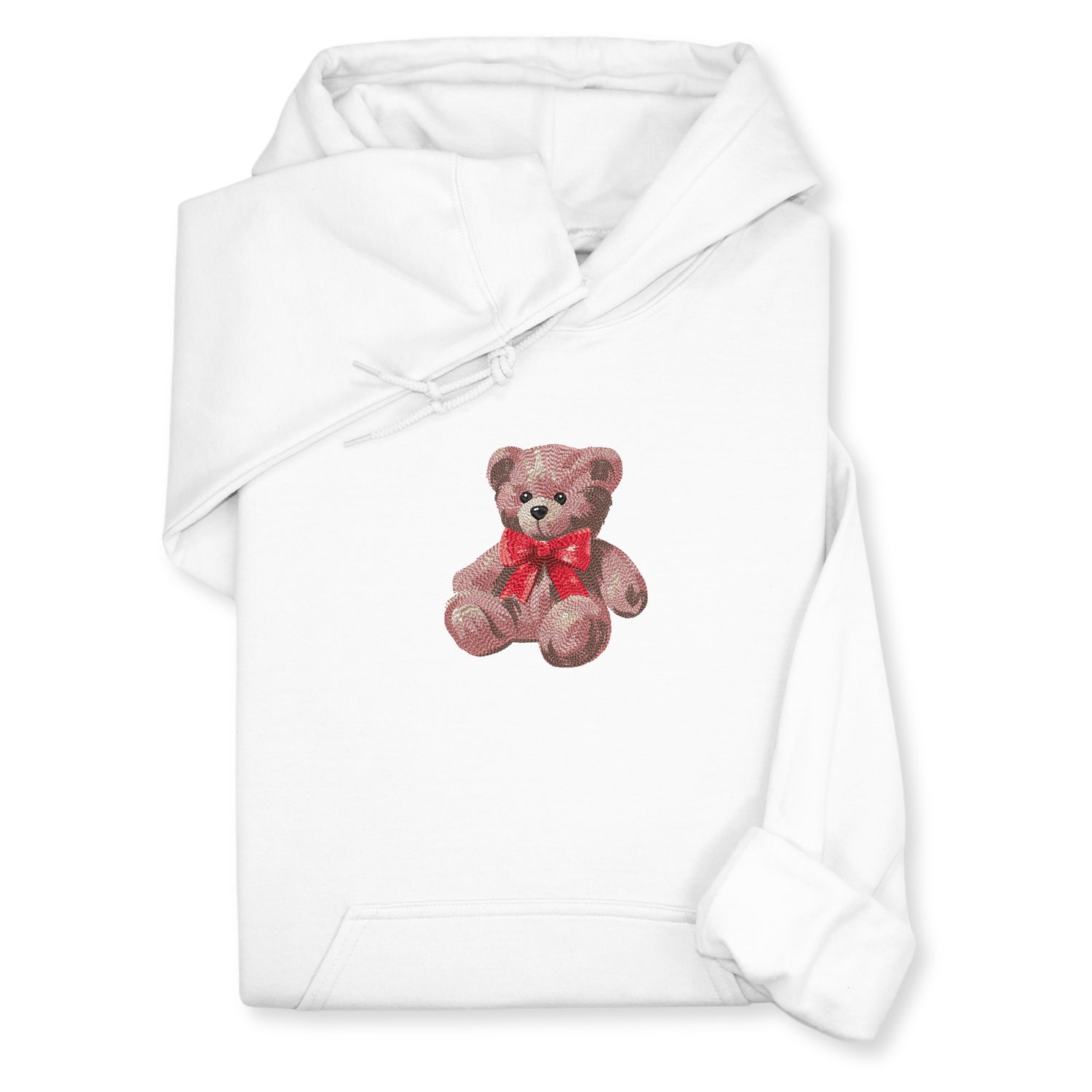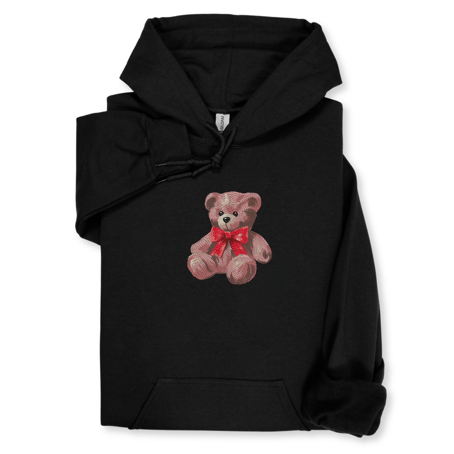 Wrap yourself in cozy cuteness with this embroidered hoodie or sweatshirt featuring an adorable teddy bear with a little red bow. Soft, playful, and full of charm — it’s the perfect feel-good piece for fall, winter, or whenever you need a hug in clothing form.
