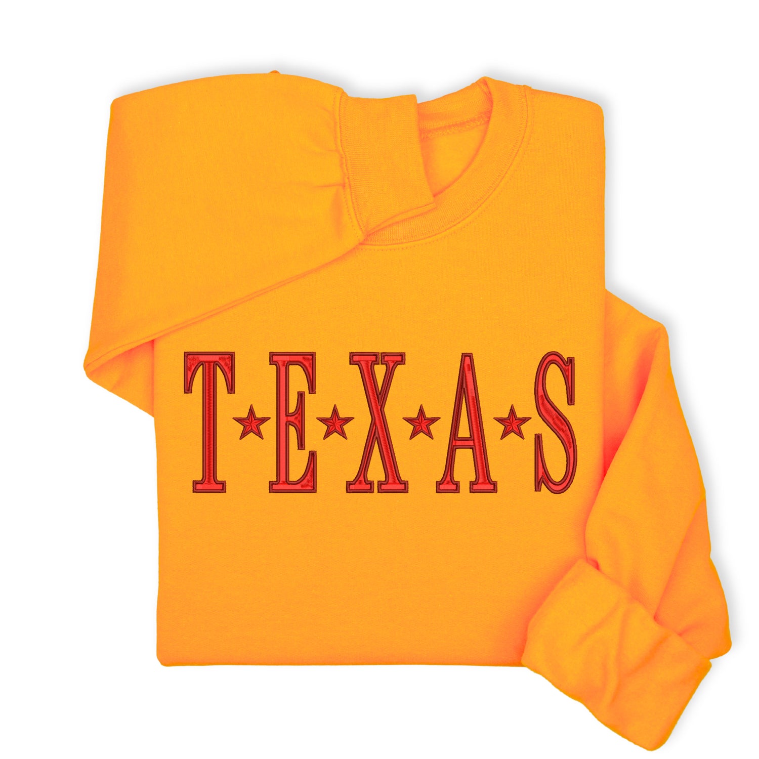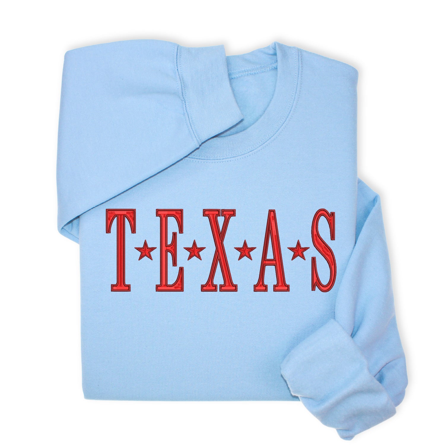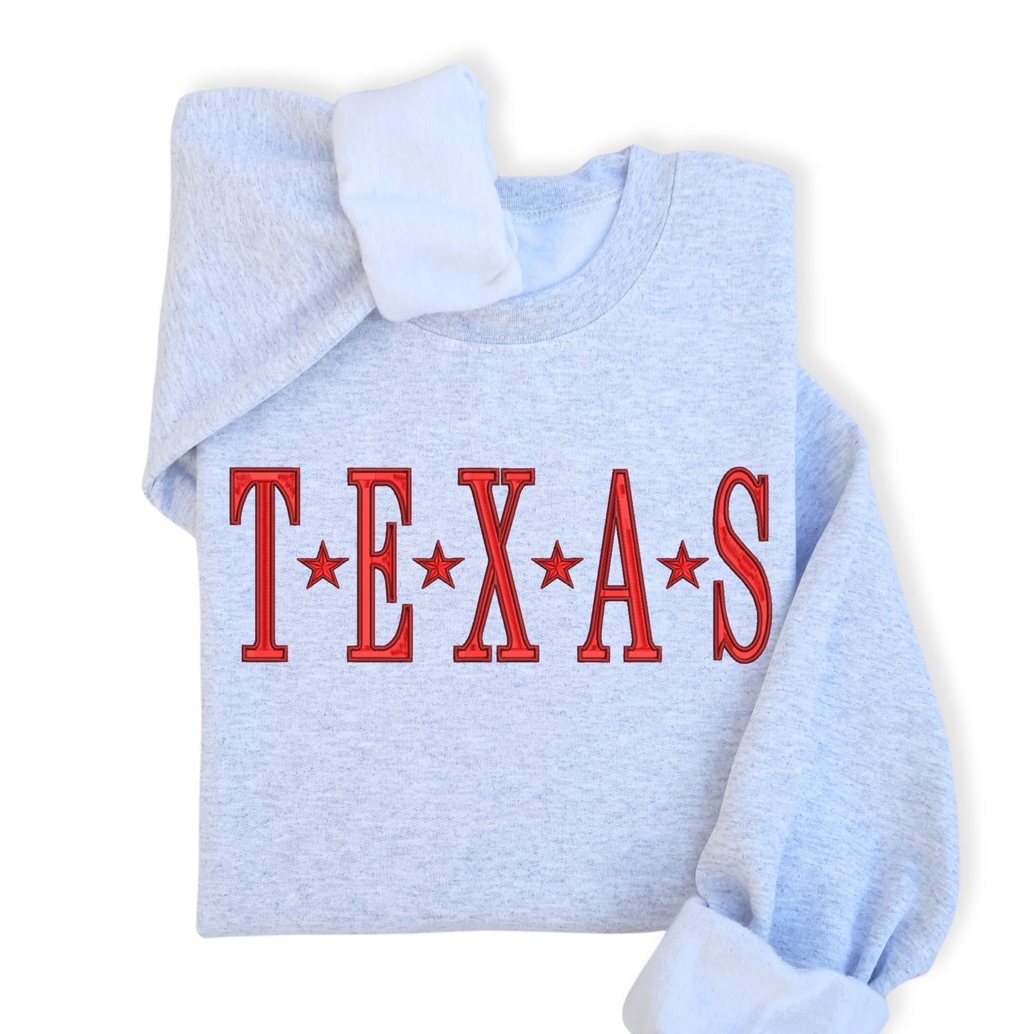Show off your Lone Star look in this cozy unisex sweatshirt or hoodie featuring bold embroidered “TEXAS” lettering. A great pick for fans of western flair and state-themed fashion.