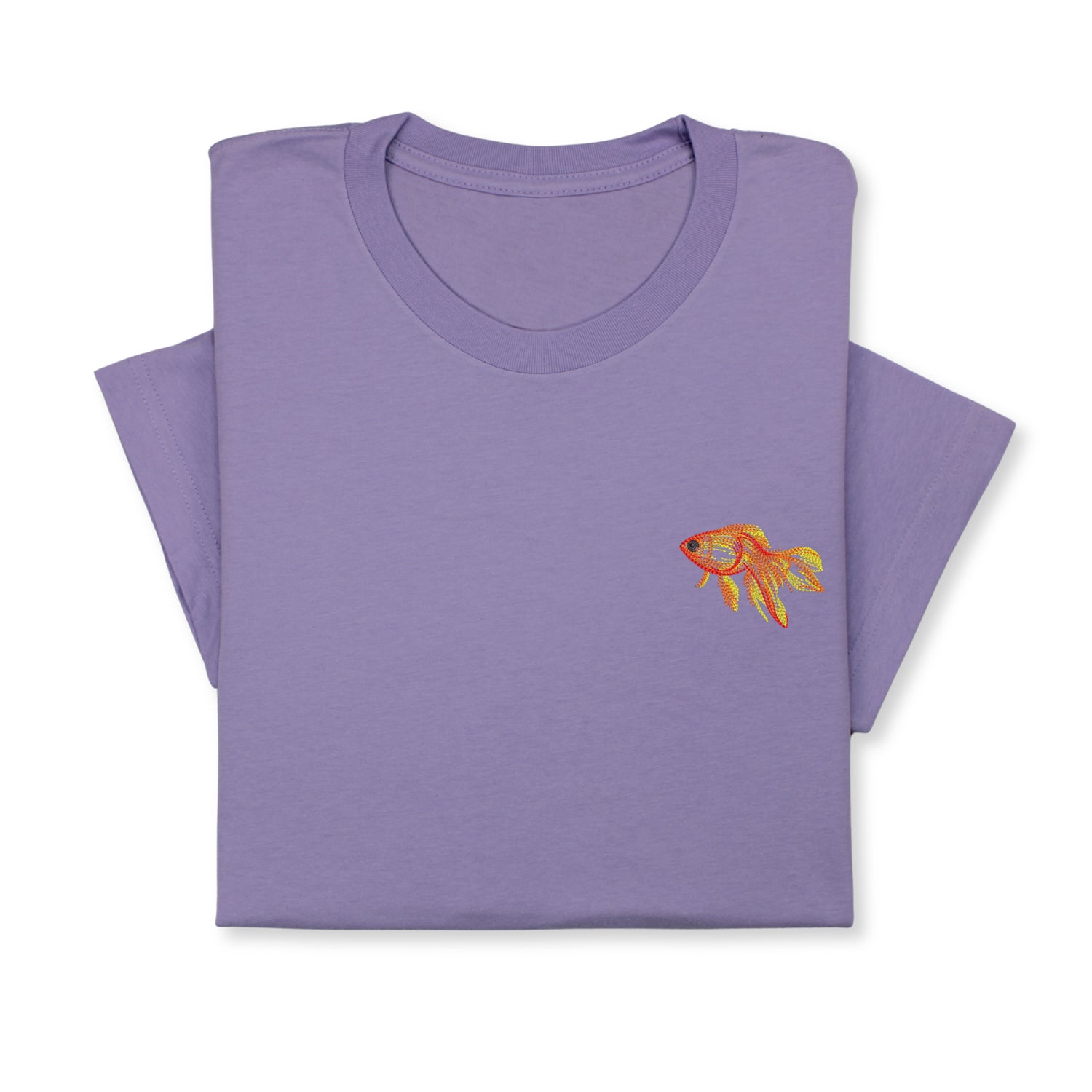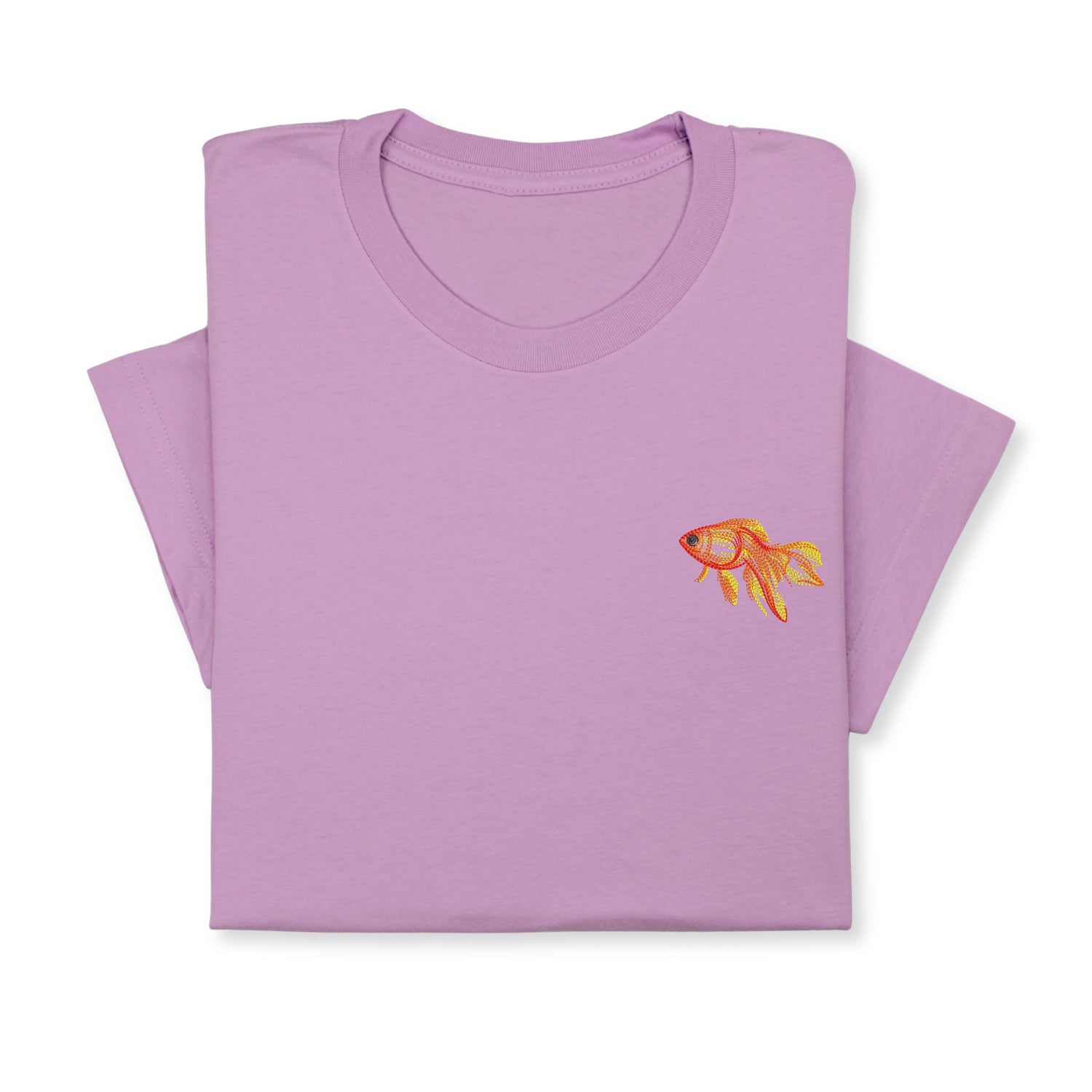 Dive into calm and charm with this unisex t-shirt featuring a vibrant embroidered goldfish — a symbol of luck, prosperity, and dreamlike beauty.