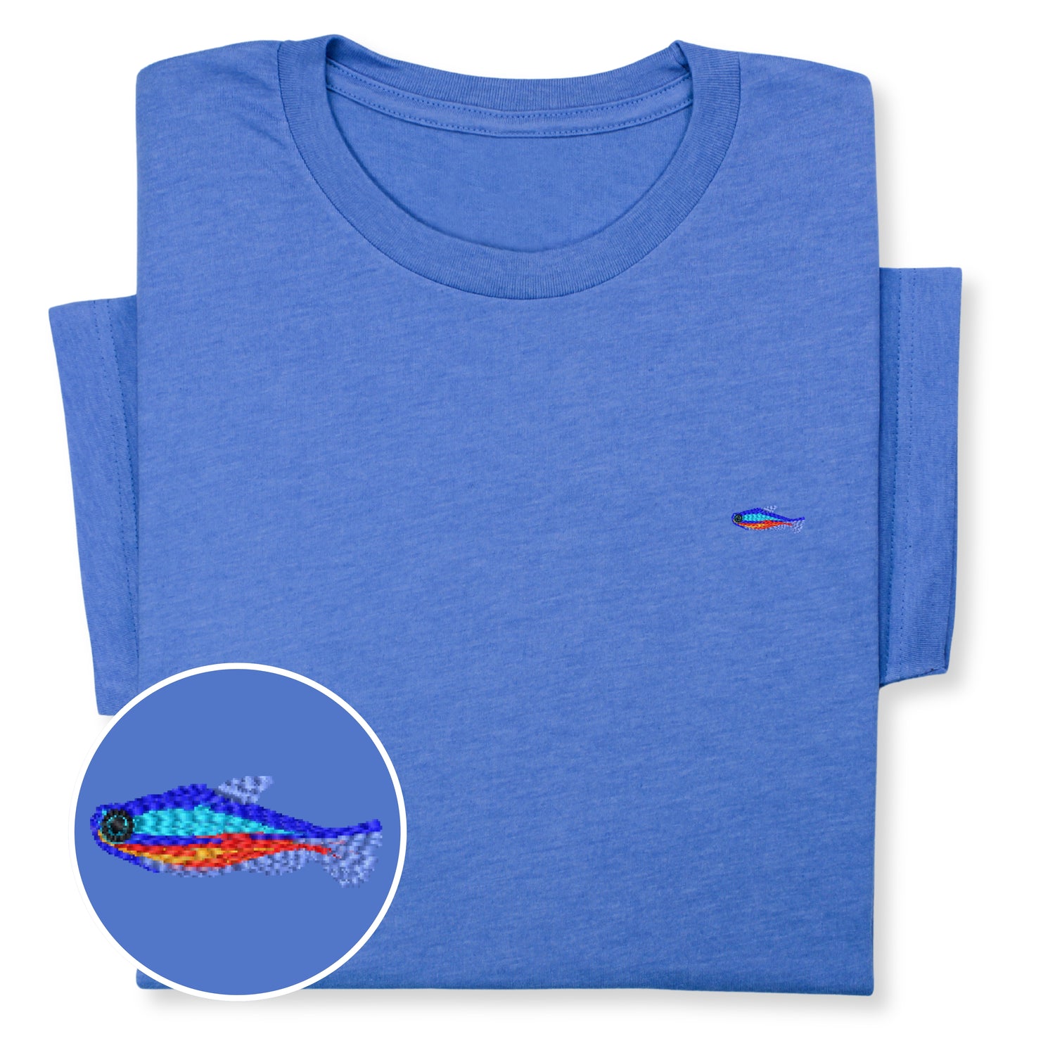 Stay cozy with this unisex T-shirt featuring a vibrant embroidered tropical fish. Perfect for ocean lovers, aquarium enthusiasts, or anyone who wants to add a splash of aquatic color to their everyday look!