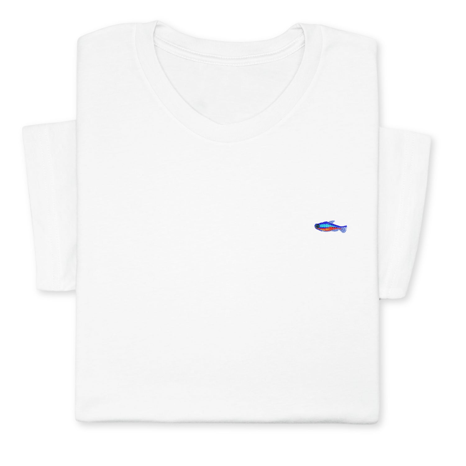Tiny Fish Embroidered T-Shirt, Minimalist Aquatic Animal Tee, Small Fish Design Shirt, Ocean-Inspired Gift, Cute Sea Life Unisex Cotton Tee