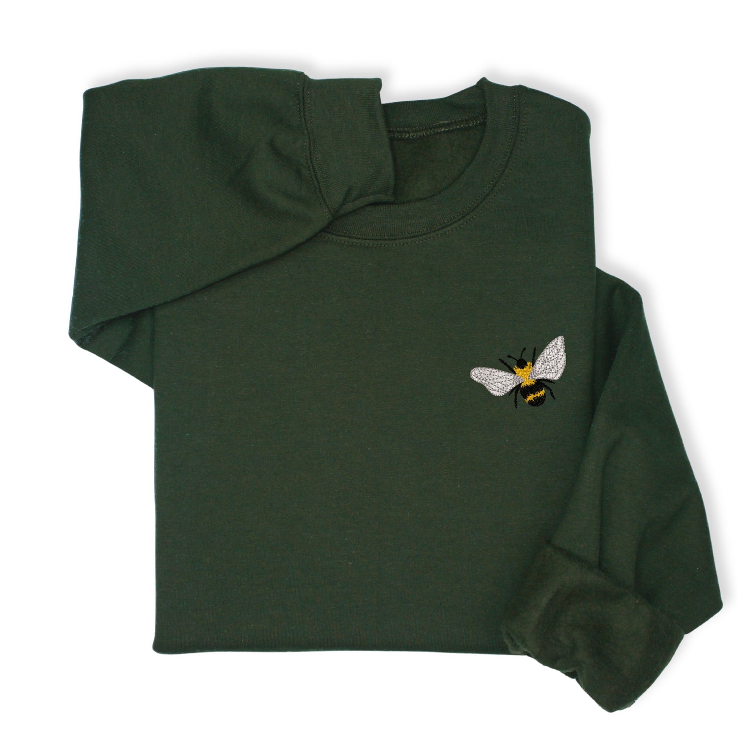 Bee Embroidered Hoodie & Sweatshirt, Minimalist Nature Lover Gift, Bumblebee Unisex Apparel, Cute Garden Aesthetic Clothing
